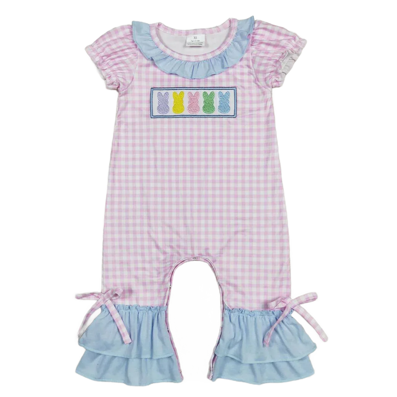 'Boho Bunny ' Baby Romper Pink Gingham Ruffle Bows
