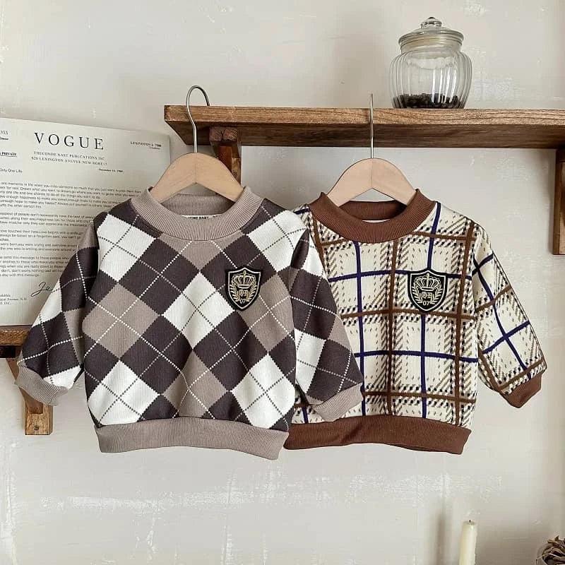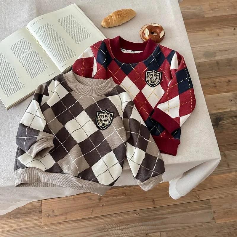Children's Preppy Argyle Pullover Baby Kids Clothes