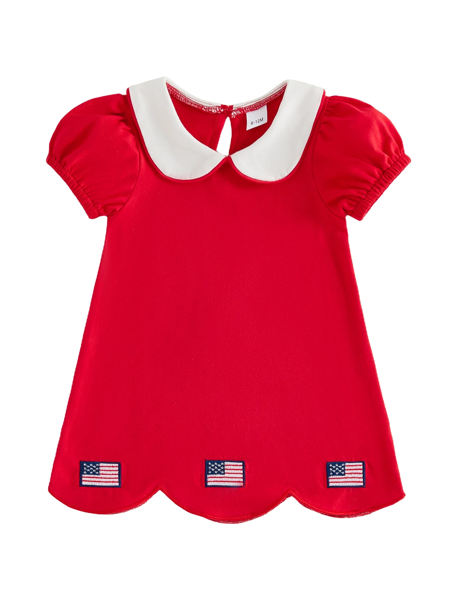 Patriotic Girl Adorable A-Line Dress with Embroidered Flags