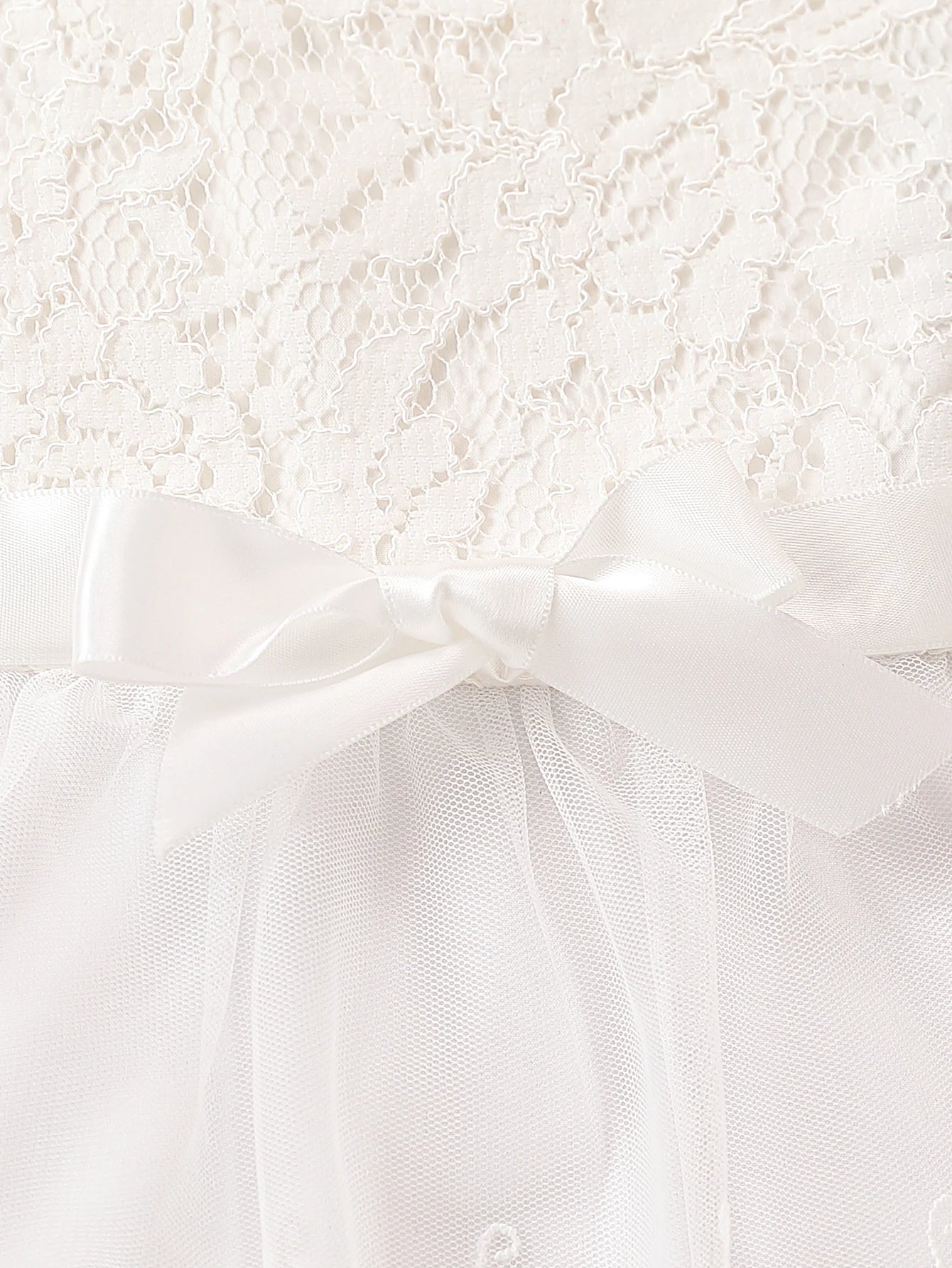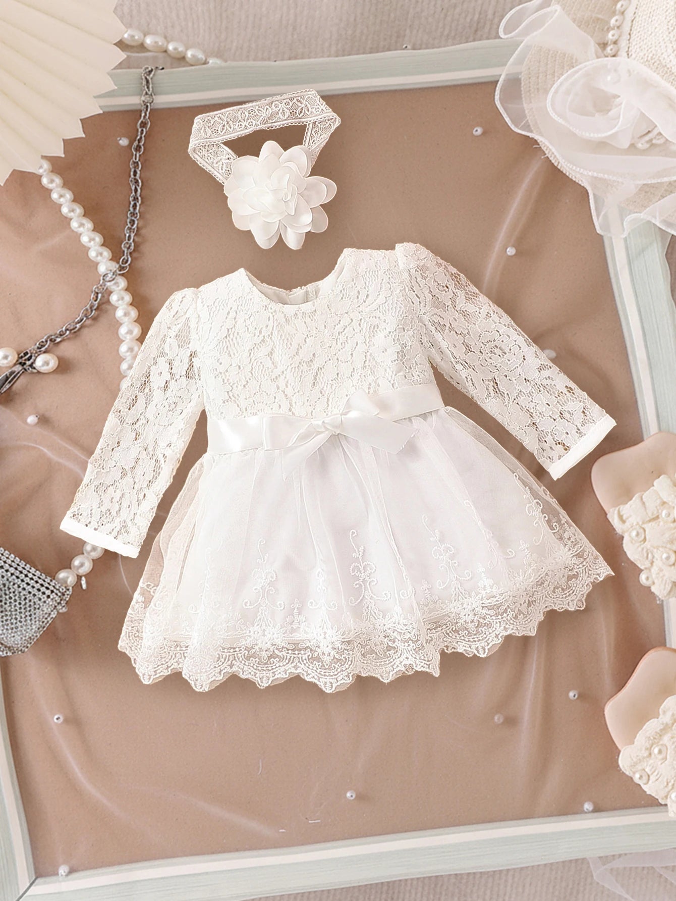 Aliana Elegant Baby White Lace Dress with Head Bow