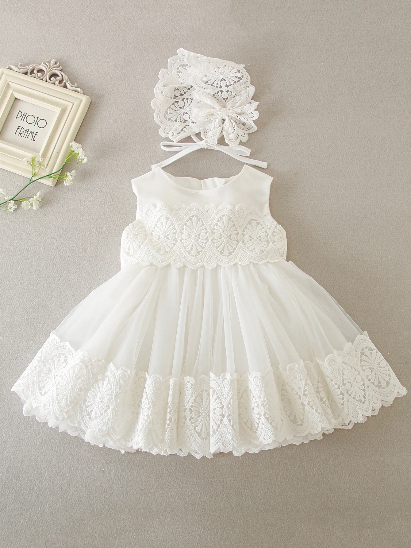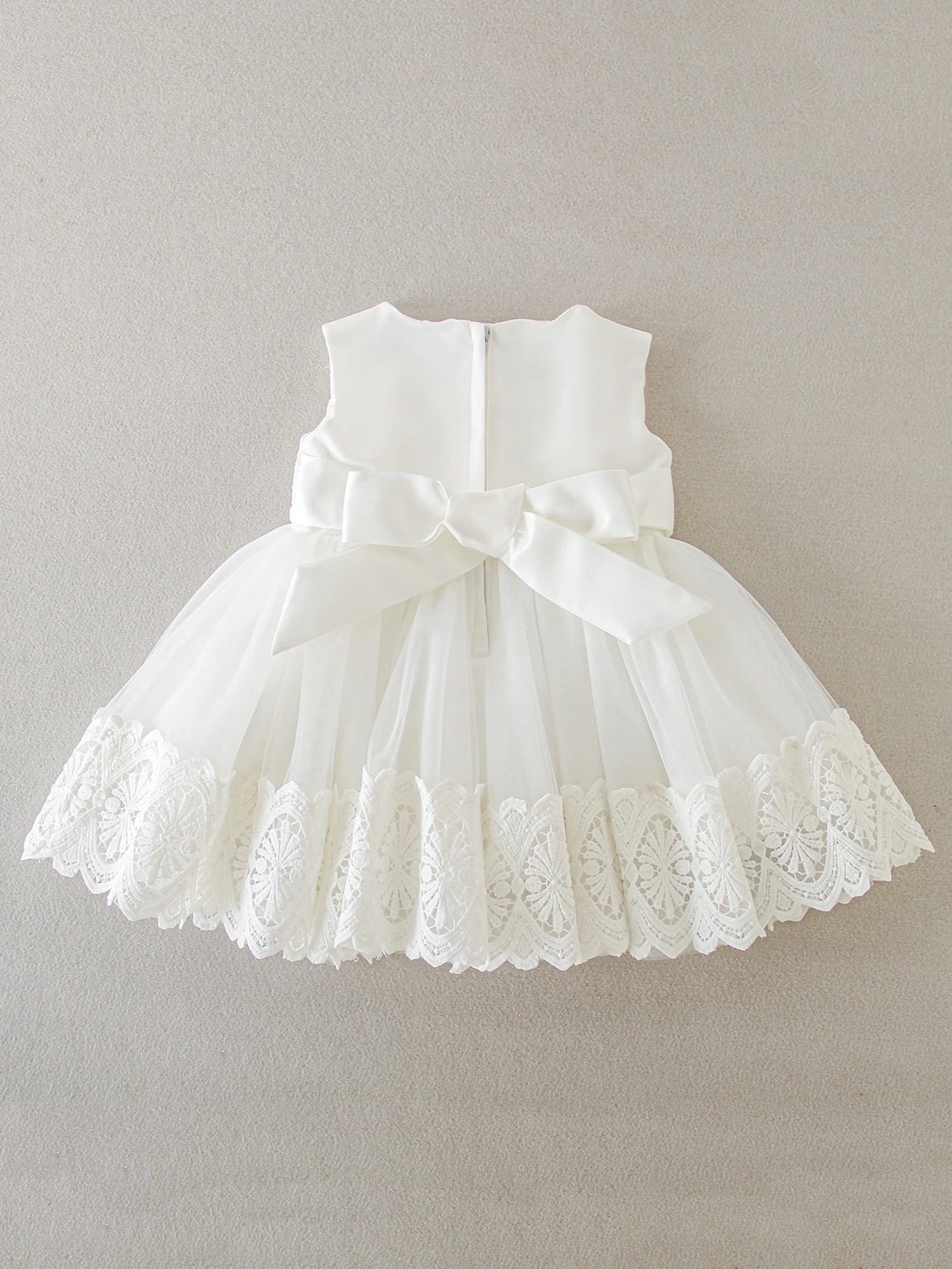 Our Amaryllis Lace Tulle Special Occasion Dress brings understated elegance to your daughter's most important celebrations. Designed for infants and toddlers in sizes 3-24 months, this knee-length dress features a fitted bodice with refined lace detailing and a graceful sashed back that exudes timeless sophistication.
