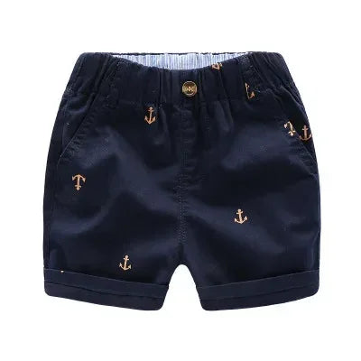 Discover our stylish and versatile Anchor-Embroidered Casual Shorts for Boys, available in two classic colors: khaki and navy. These shorts are designed to add a splash of fun and comfort to your little one's wardrobe, making them perfect for any occasion.
