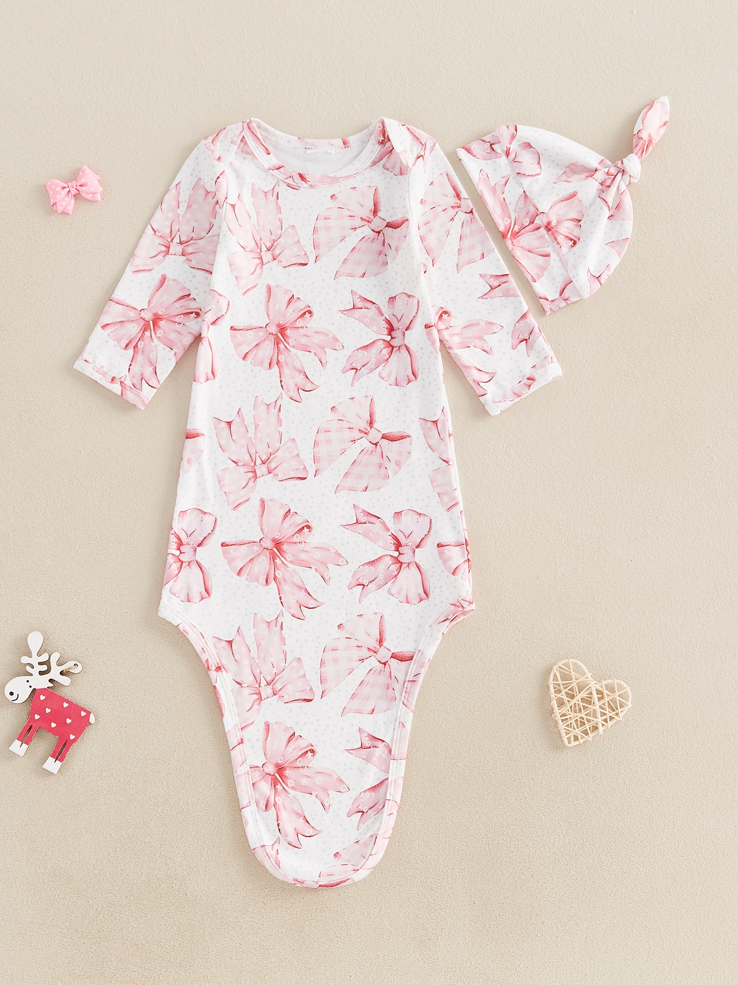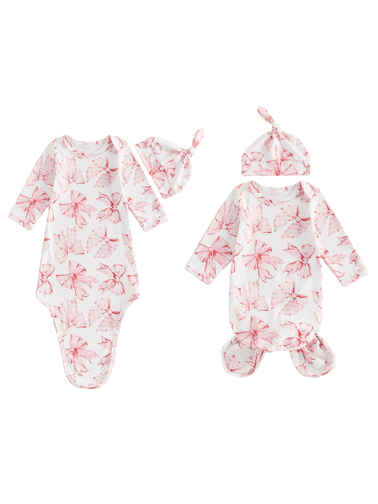 Baby Bows Knotted Infant Swaddle Gown 2 PC Set