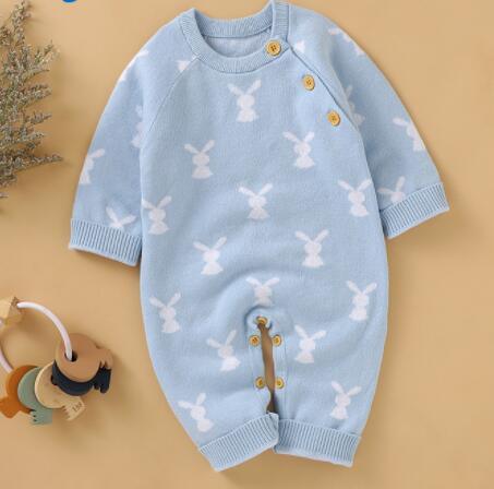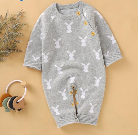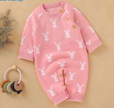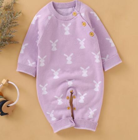 Every detail makes this romper special. The fabric is plush for chilly days or cool nights. You choose from five colors, all with sweet bunny designs. It suits naptime, family gatherings, or a stroll outdoors. The baby bunny knit romper makes a perfect baby shower or first birthday gift.