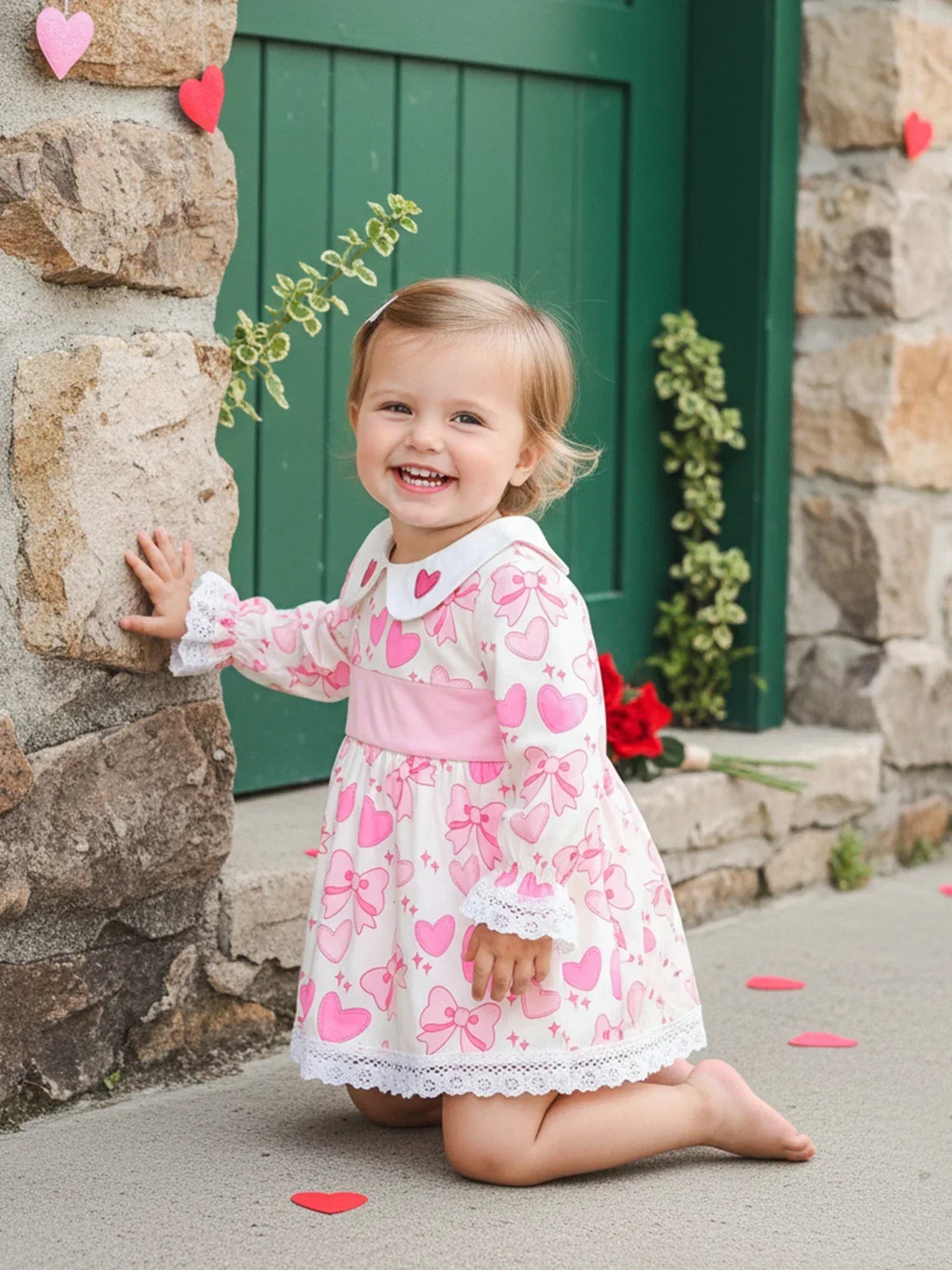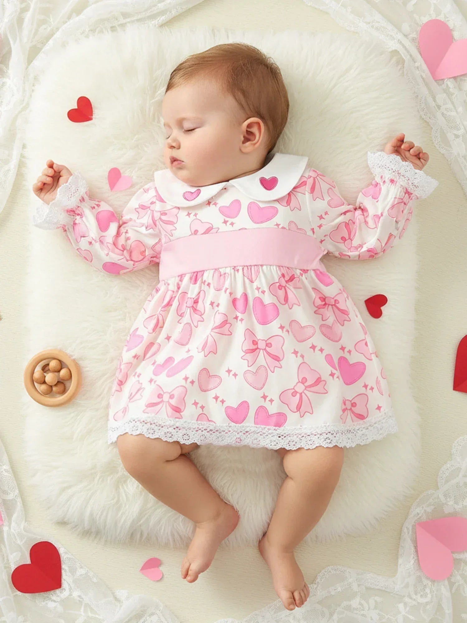 The fabric feels soft against delicate skin. The baby girl heart print dress allows your baby to move freely and feel comfortable all day. The long sleeves offer extra warmth during cooler days. The dress includes adorable details that stand out in photos and family gatherings.