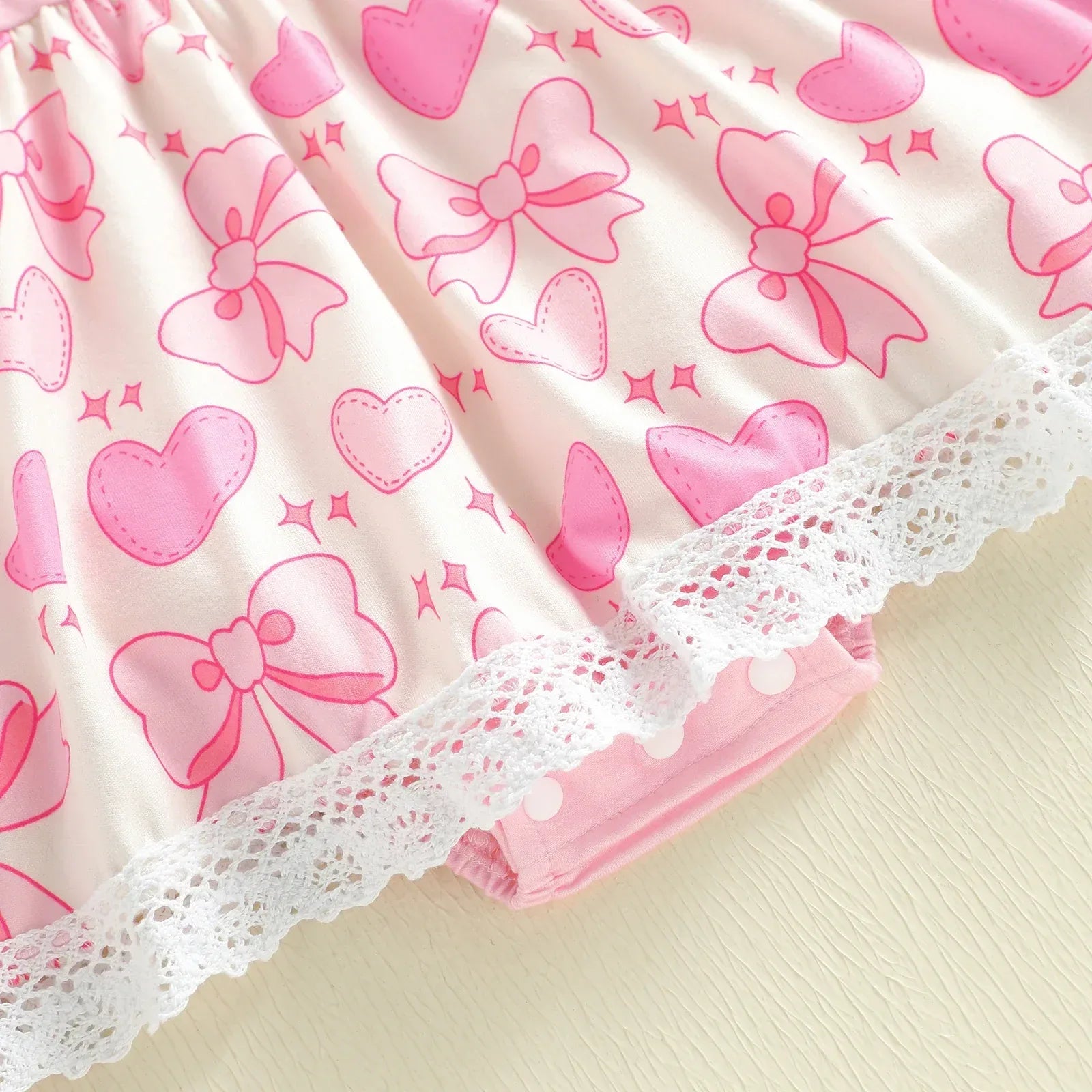 Little Hearts Baby Girl Heart Print Dress with Lace Trim