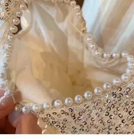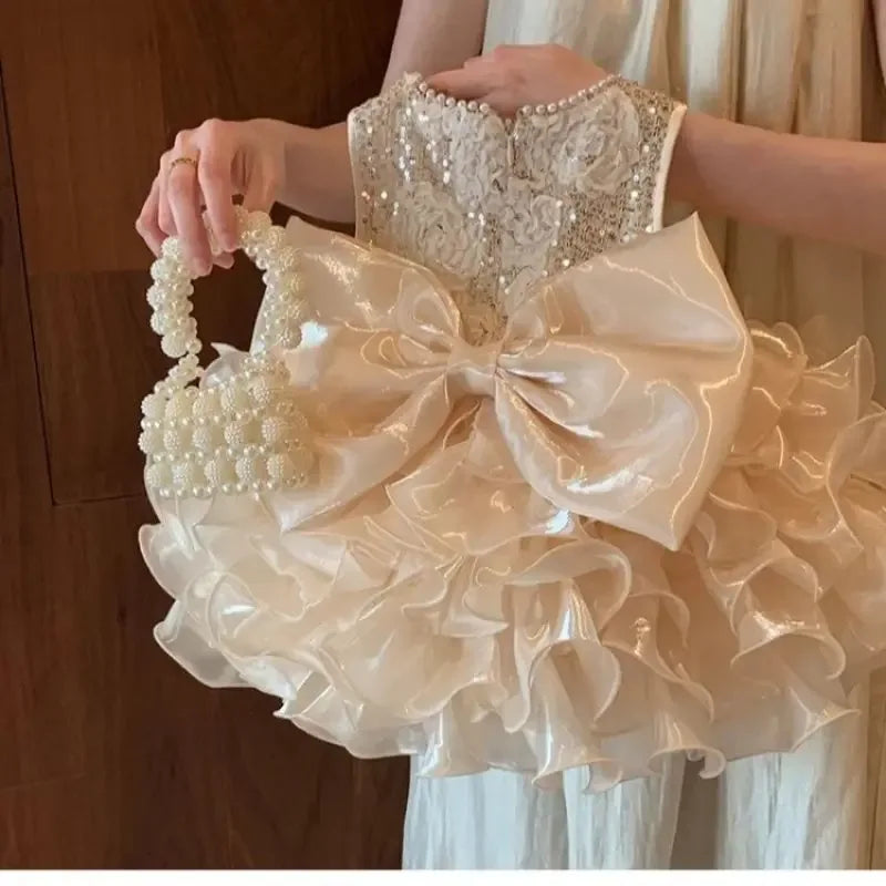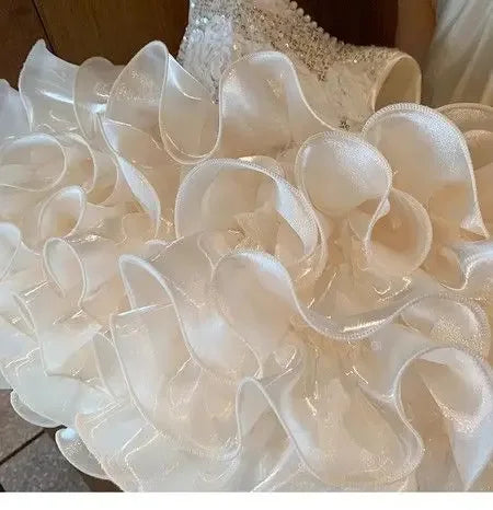 - Material: Soft organza tiers, sequin bodice, satin lining