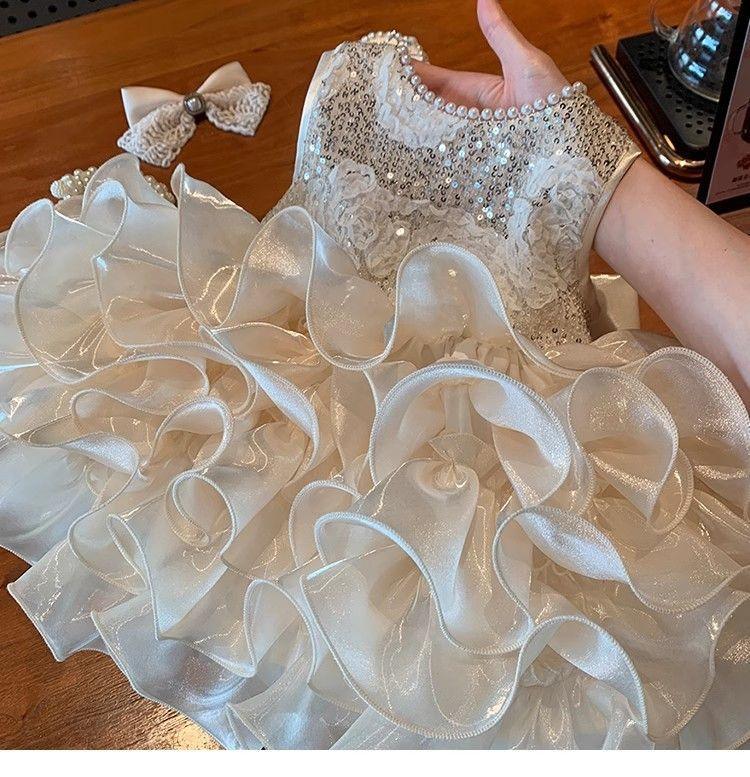 Pair this baby girl sequined tiered dress with soft ballet flats for a formal gathering. Add a headband or matching bow for extra sweetness. It works well for birthday parties, weddings, or family celebrations. This piece stands out as a thoughtful shower gift, sure to be a favorite in any little girl's closet.