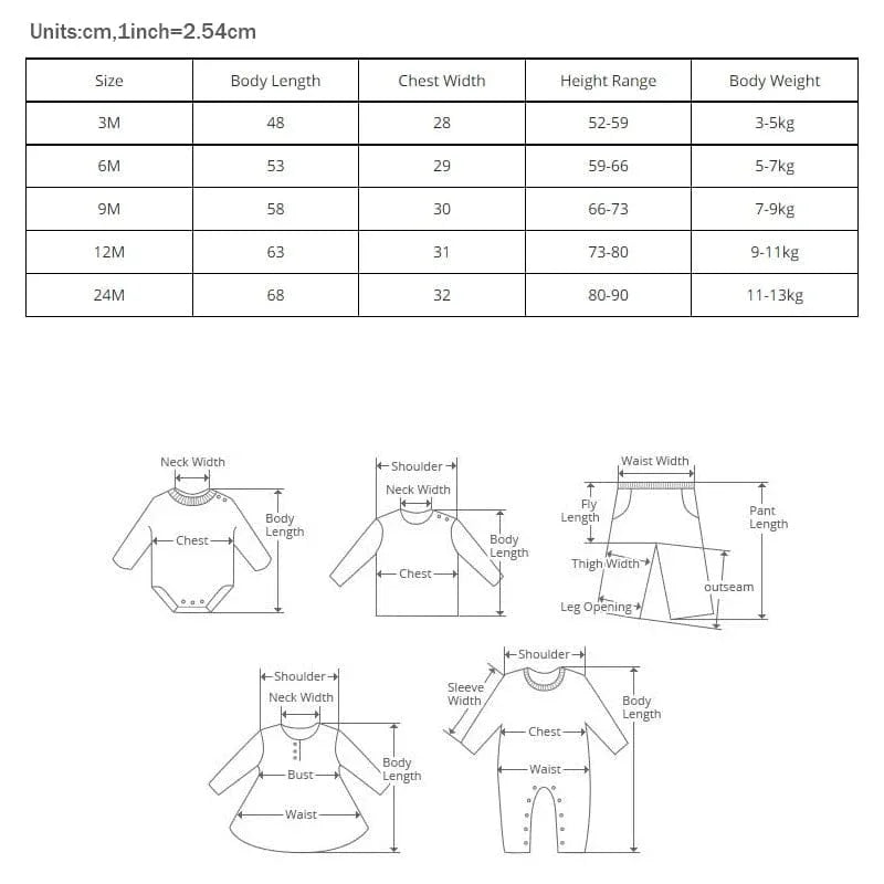 When it comes to sizing, we have options for every little one, from newborns to 24 months. To help you choose the right fit, please refer to our size chart below.