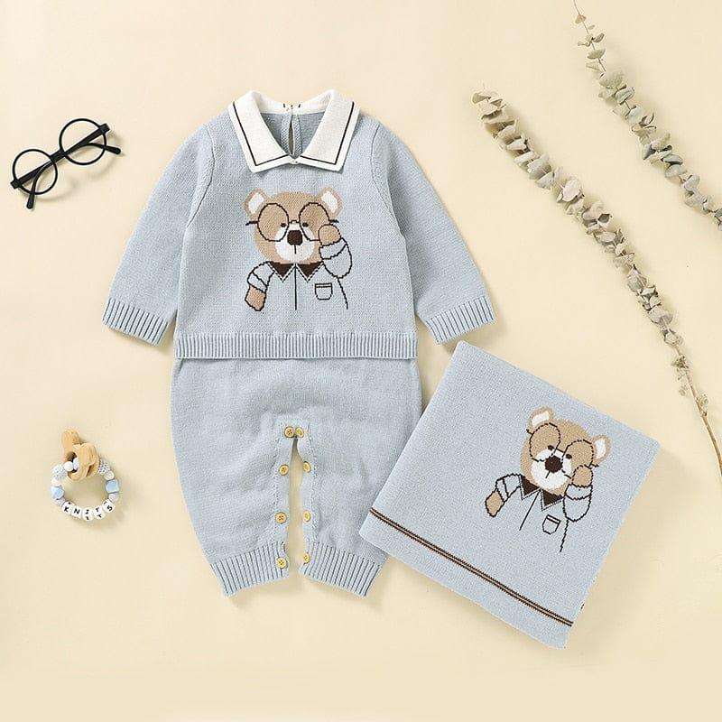 'Beary Cute' Baby Knit Romper and Blanket Set