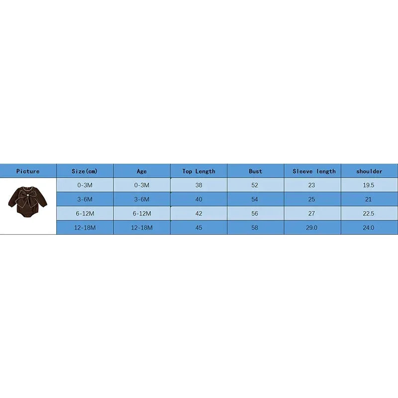 0-3M Length: 38 Bust: 52 Sleeve: 23 Shoulder: 19.5 Advised Age: 0-3 Months