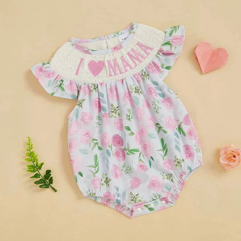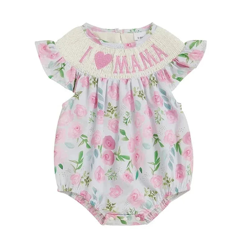 Mama's Girl Baby Smocked Bubble Romper Floral Pink