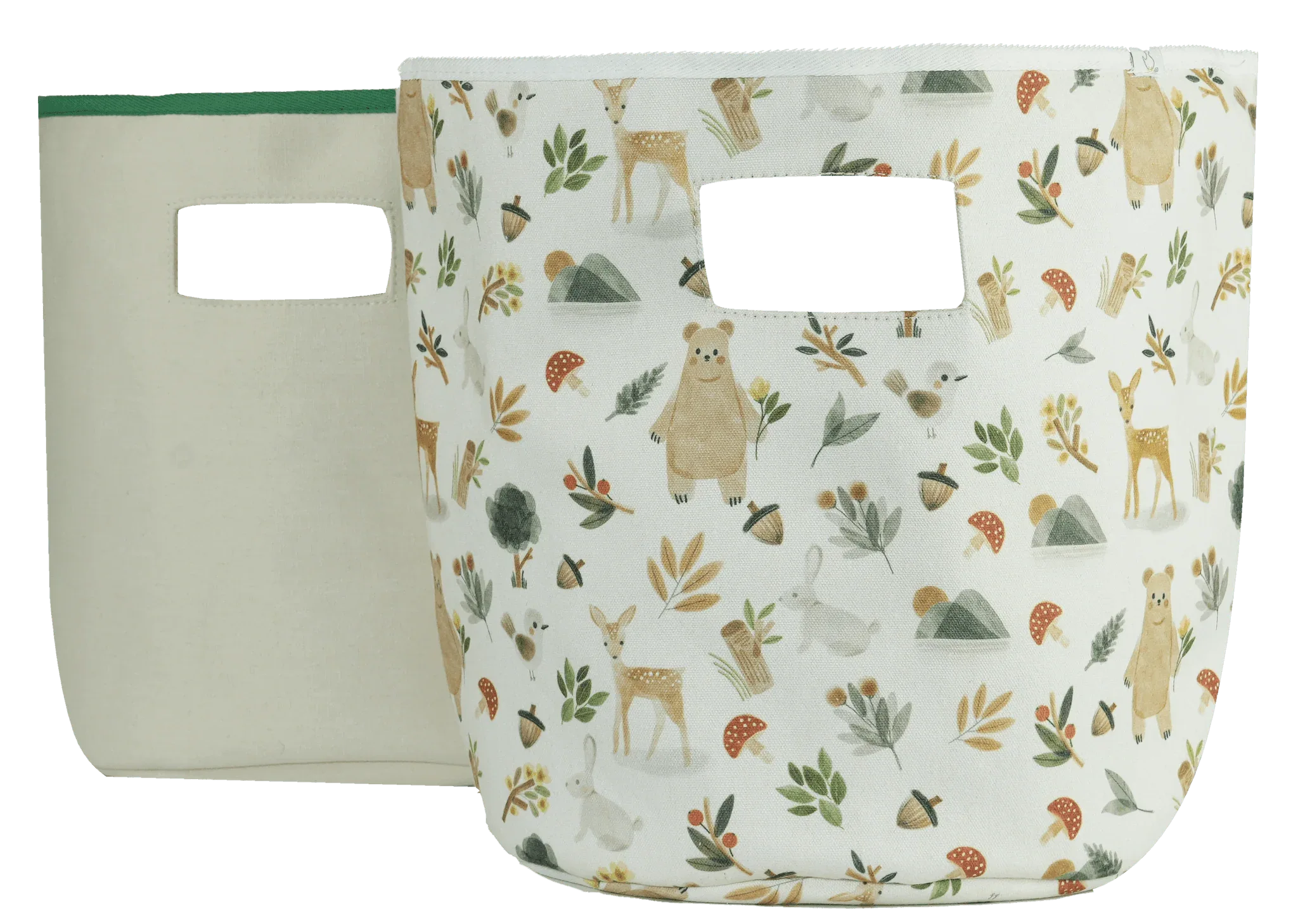 Organize your nursery with the Goosewaddle® Woodland Animal Baby Storage Bins Set. These baby storage bins feature whimsical woodland creatures and a soft, neutral palette that blends seamlessly into any space. Made from high-quality cotton canvas, these bins provide a durable yet gentle storage solution for toys, blankets, books, and daily essentials. Their smooth fabric keeps baby's items protected from scratches or snags.