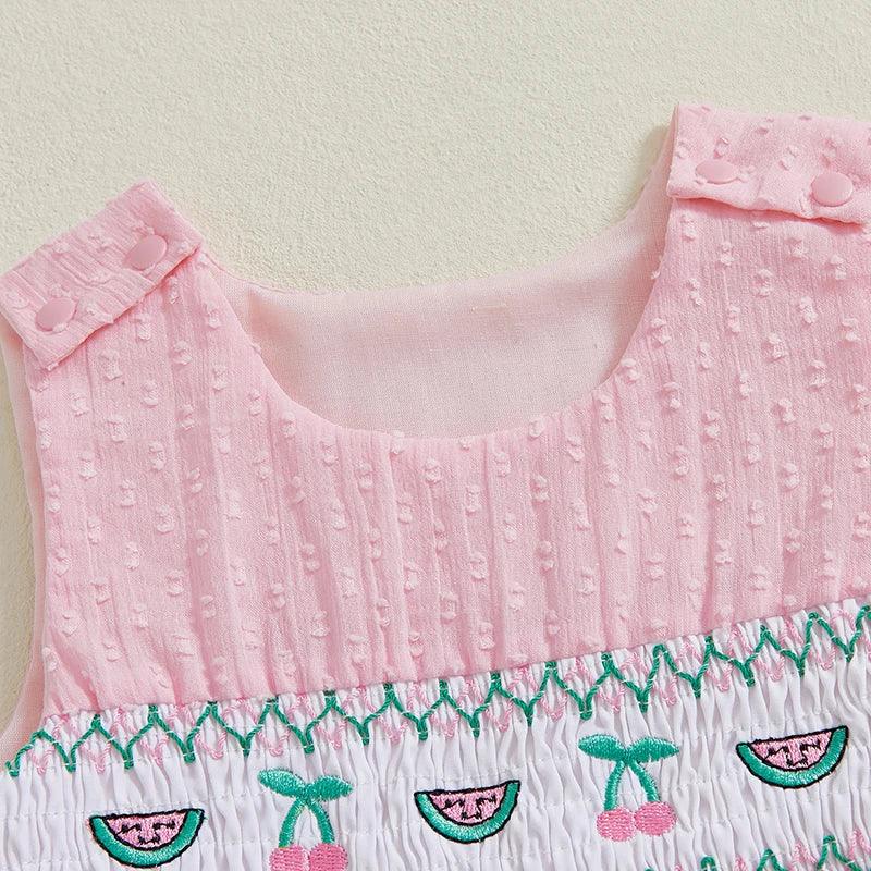 Dress your little one in style with our adorable "Life is a Bowl of Fruit" Baby Summer Romper Sundress! Perfect for babies aged 0 to 18 months, this charming outfit features delightful embroidered vegetables and fruits, making it a standout piece for the warm months.