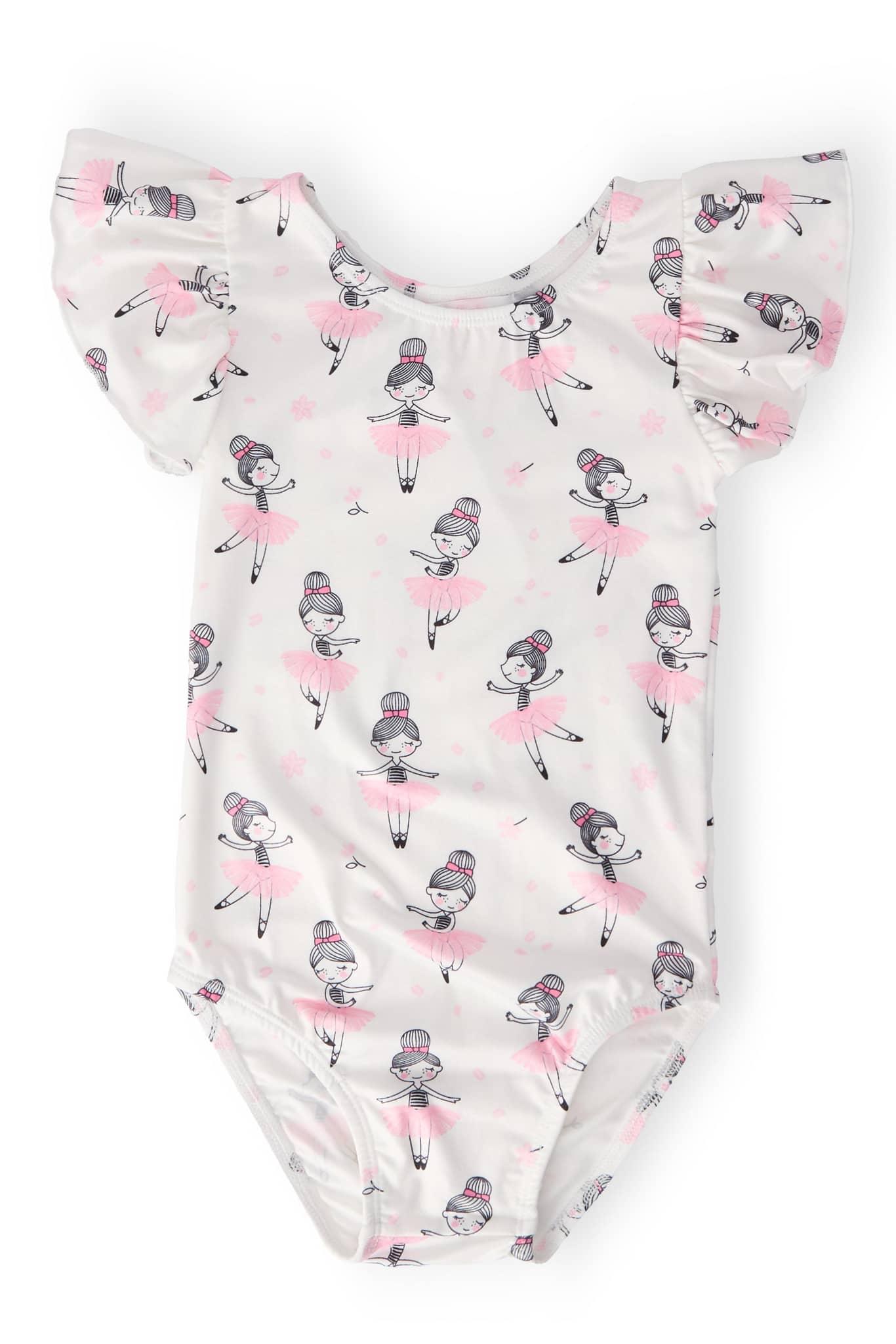The ballerina flutter sleeve leotard from Mila & Rose® is a charming must-have for every little dancer. The pretty ballerina print adds a touch of whimsy. Soft flutter sleeves give the piece a delicate look that stands out. Each detail ensures comfort and style for play, dance, and every special moment.