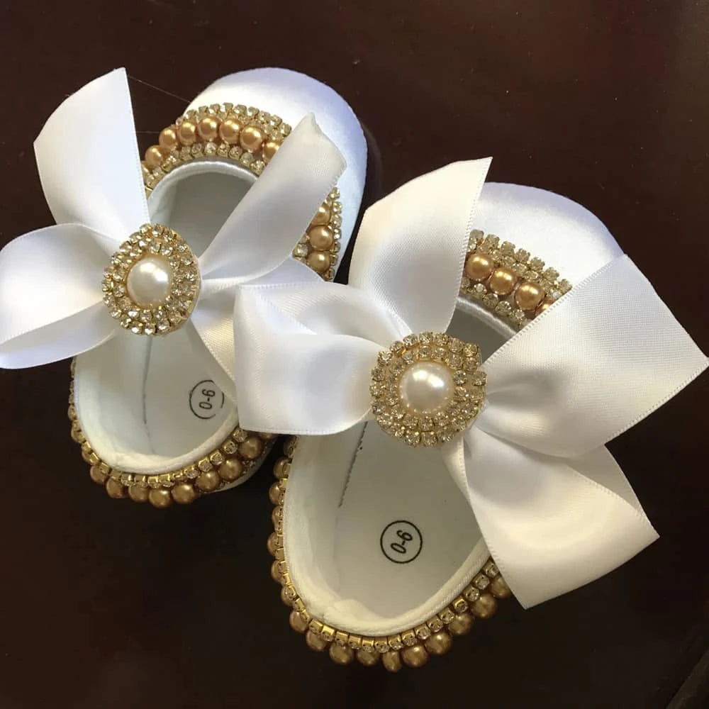 If you want beaded baby pre-walker shoes for a special event, these are a perfect pick. The sparkling beads and bows make them memorable. Pair them with a beautiful dress or formal outfit. The design suits many occasions.