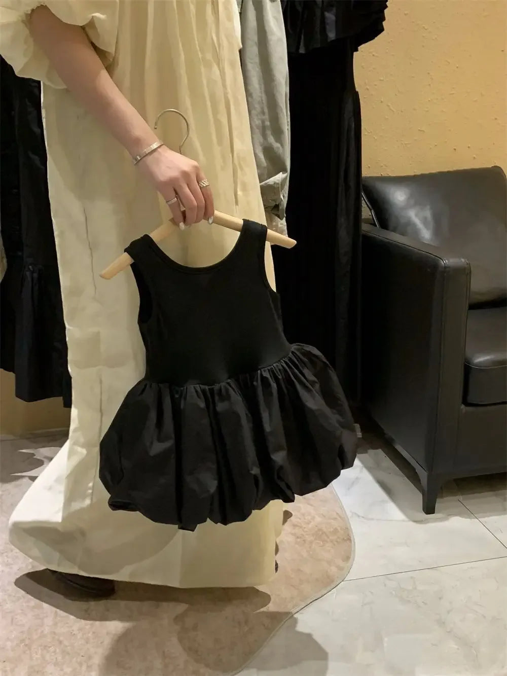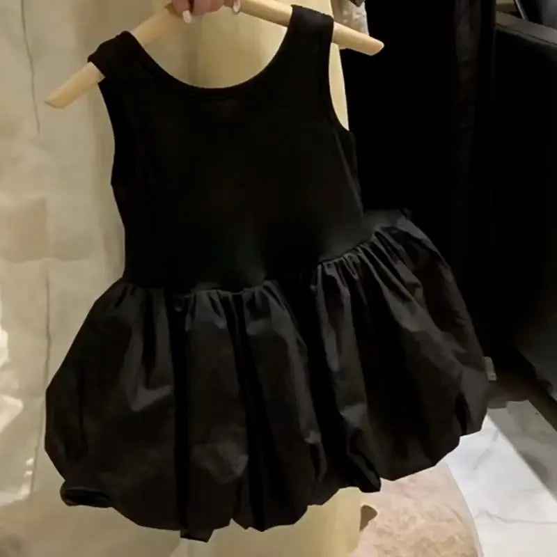 Black Girls Party Dress with Cutouts - Bubble Skirt Style