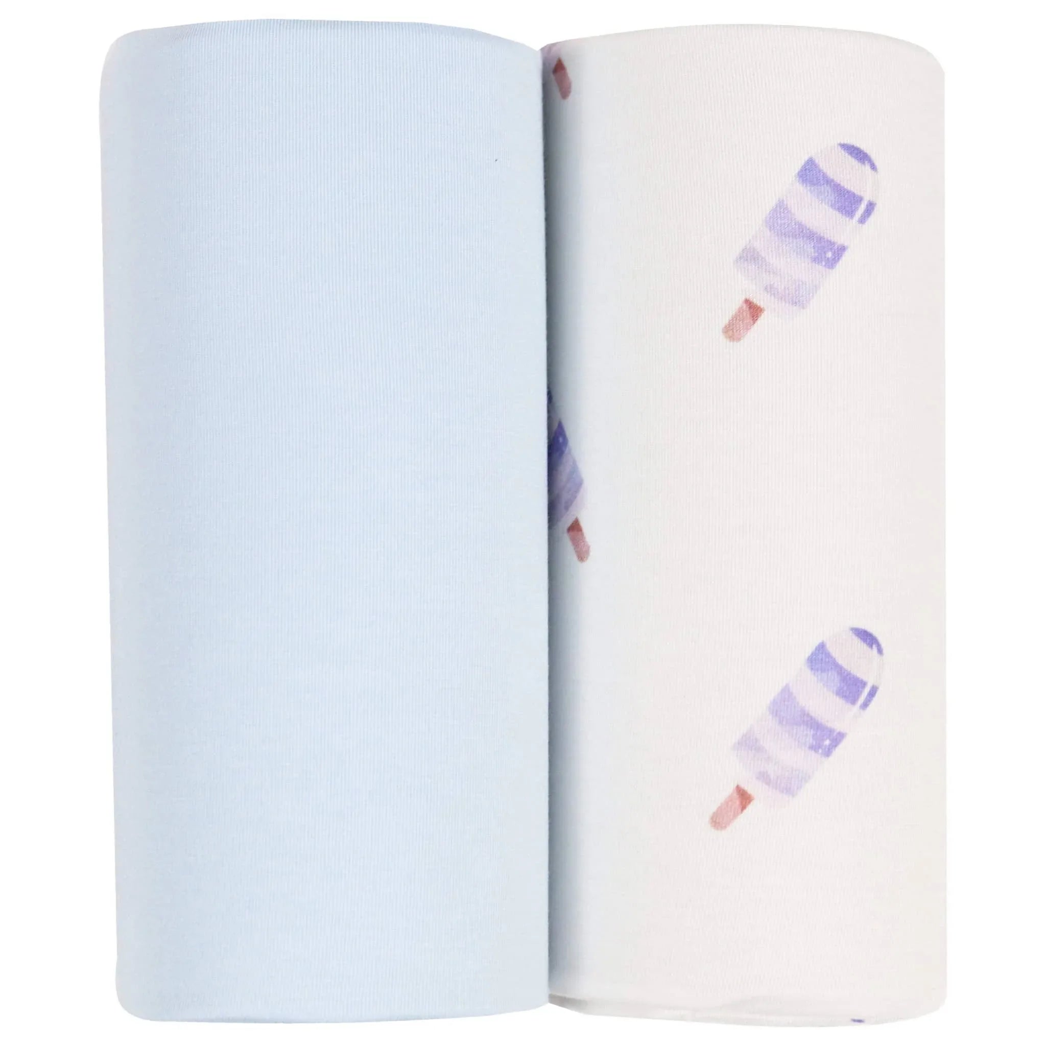 Wrap your newborn in comfort with the blue baby swaddle blanket set. Each set features two soft blankets—one with a playful blue popsicle print, the other in classic solid blue. The fabric is gentle and stretchable for a cozy fit your baby can move in easily. Sized just right for newborns, these blankets are roomy enough for secure swaddling and flexible enough to use as stroller covers or nursing wraps.