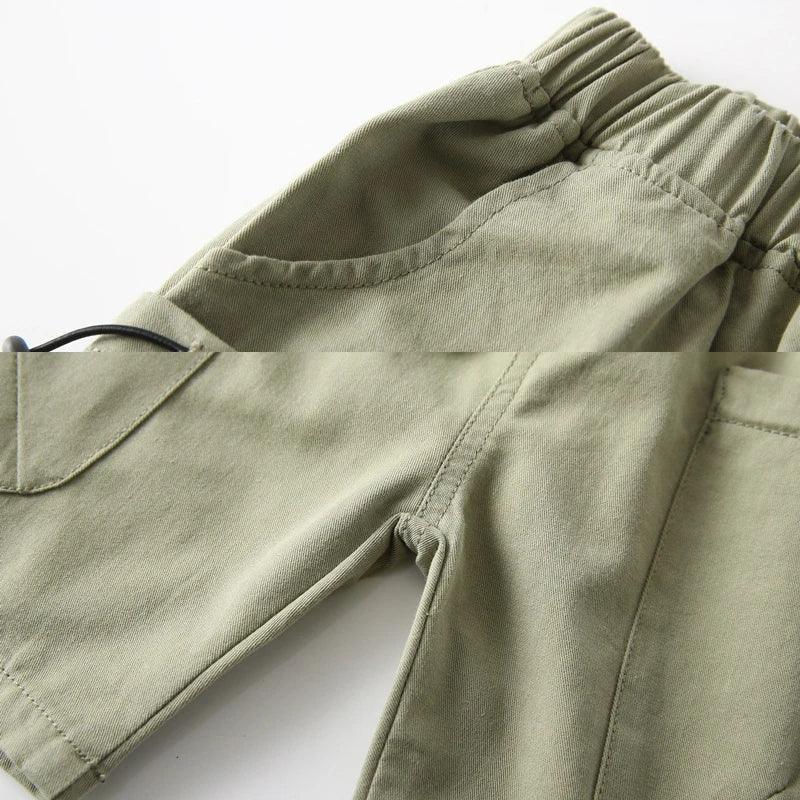Comfort is key with the "Robby" Cargo Shorts, featuring an elastic waistband that provides a snug and flexible for your little guy. Made from soft, breathable cotton, these shorts ensure your child stays comfortable during all their adventures, whether at school, in the park, or at family gatherings.