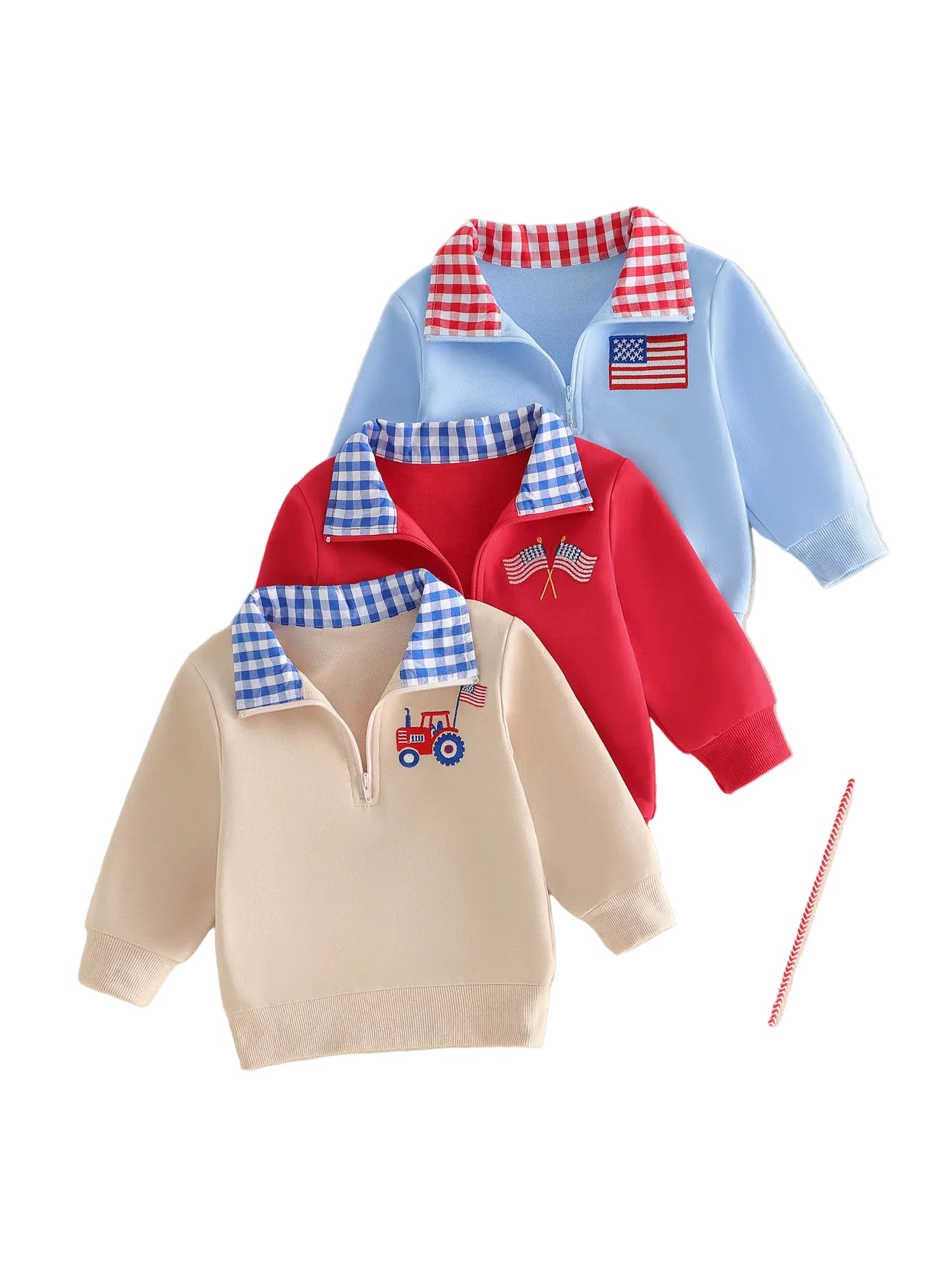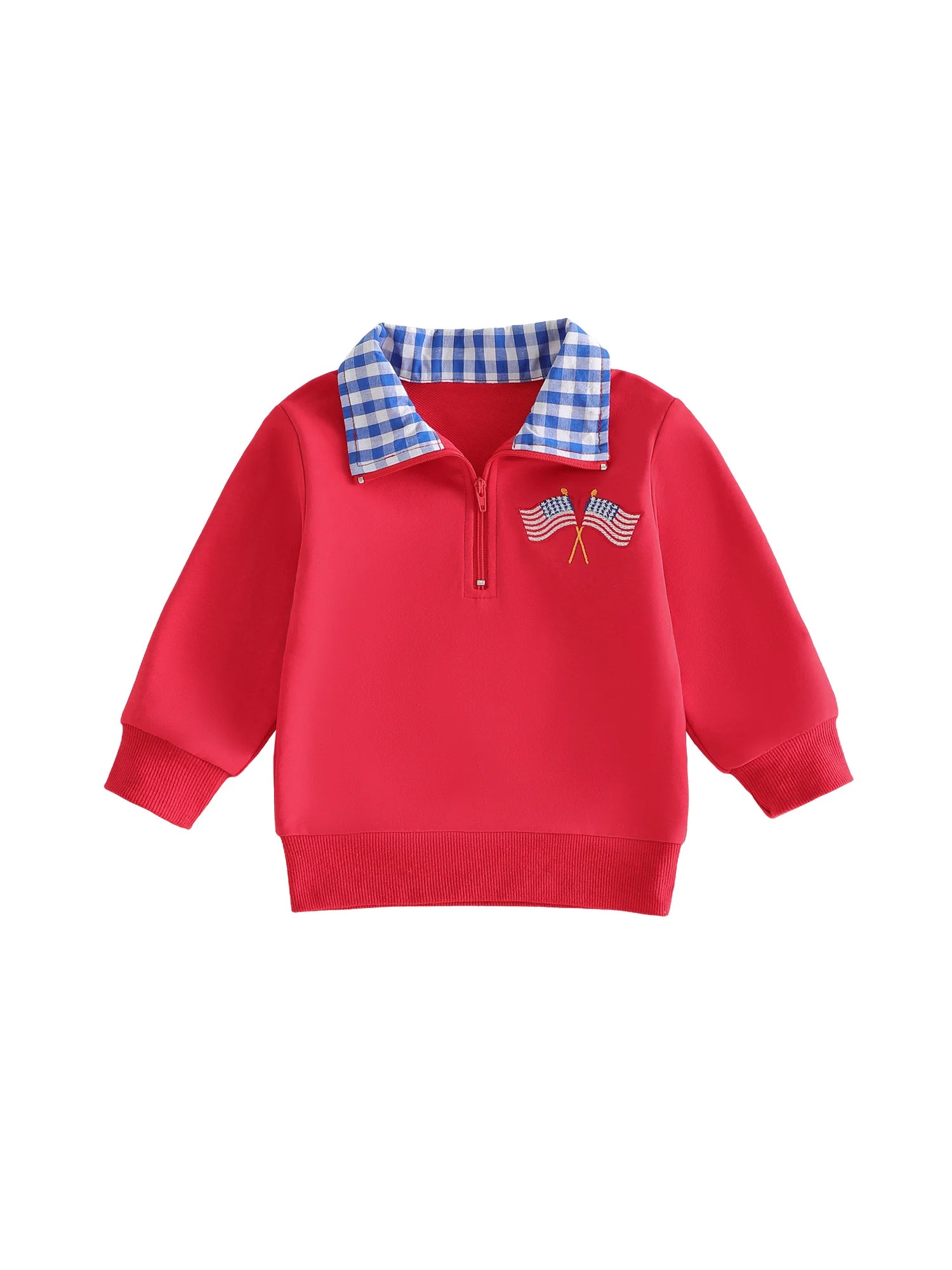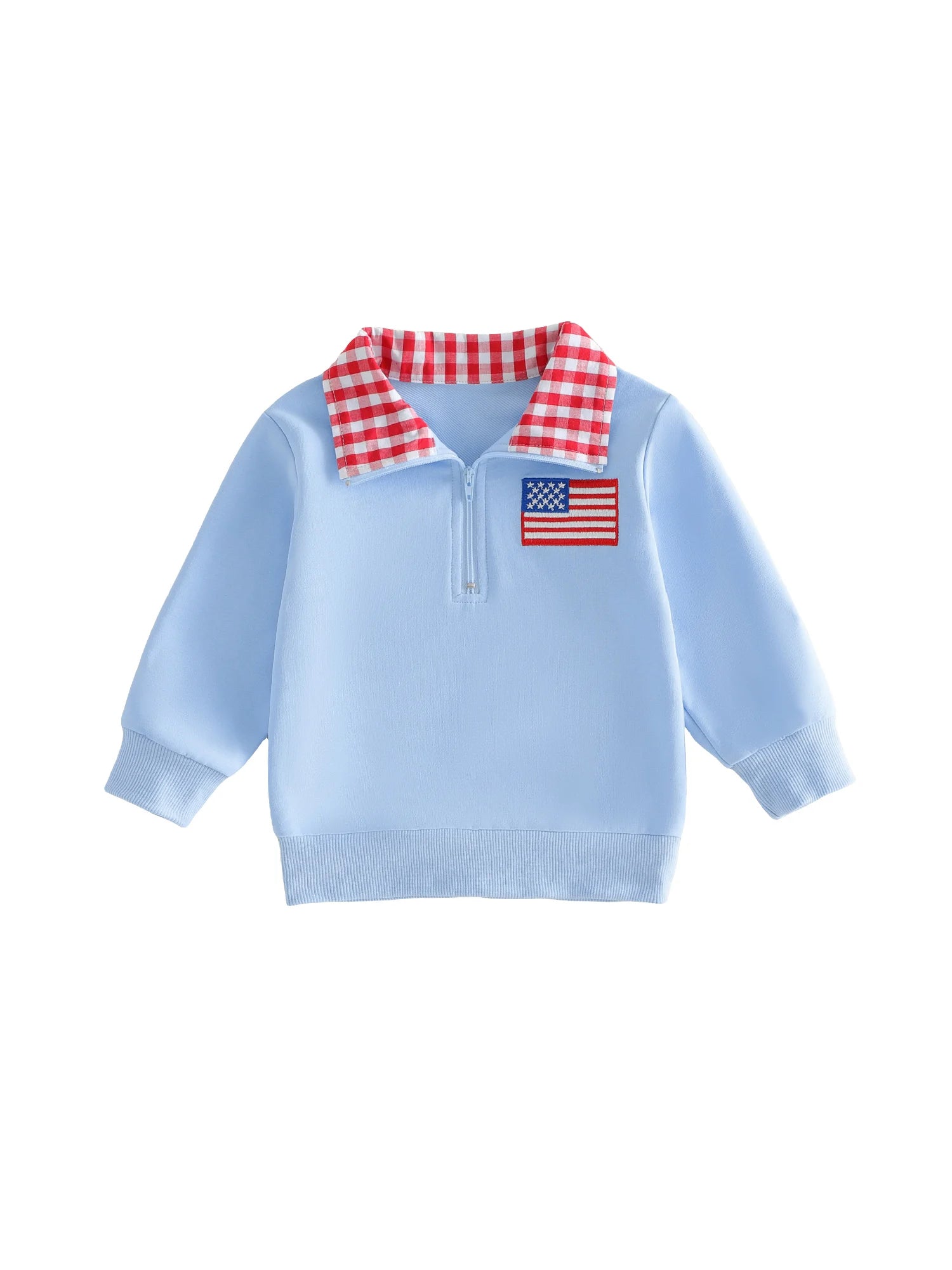 Celebrate Our 250th BirthdayMake your child's wardrobe as vibrant as their personality. Donât miss out on this chance to dress your little ones in a piece thatâs as stylish as it is meaningful. Treat your little one to the Peter Patriotic Long Sleeve Knit Pullover today and watch them shine with pride.