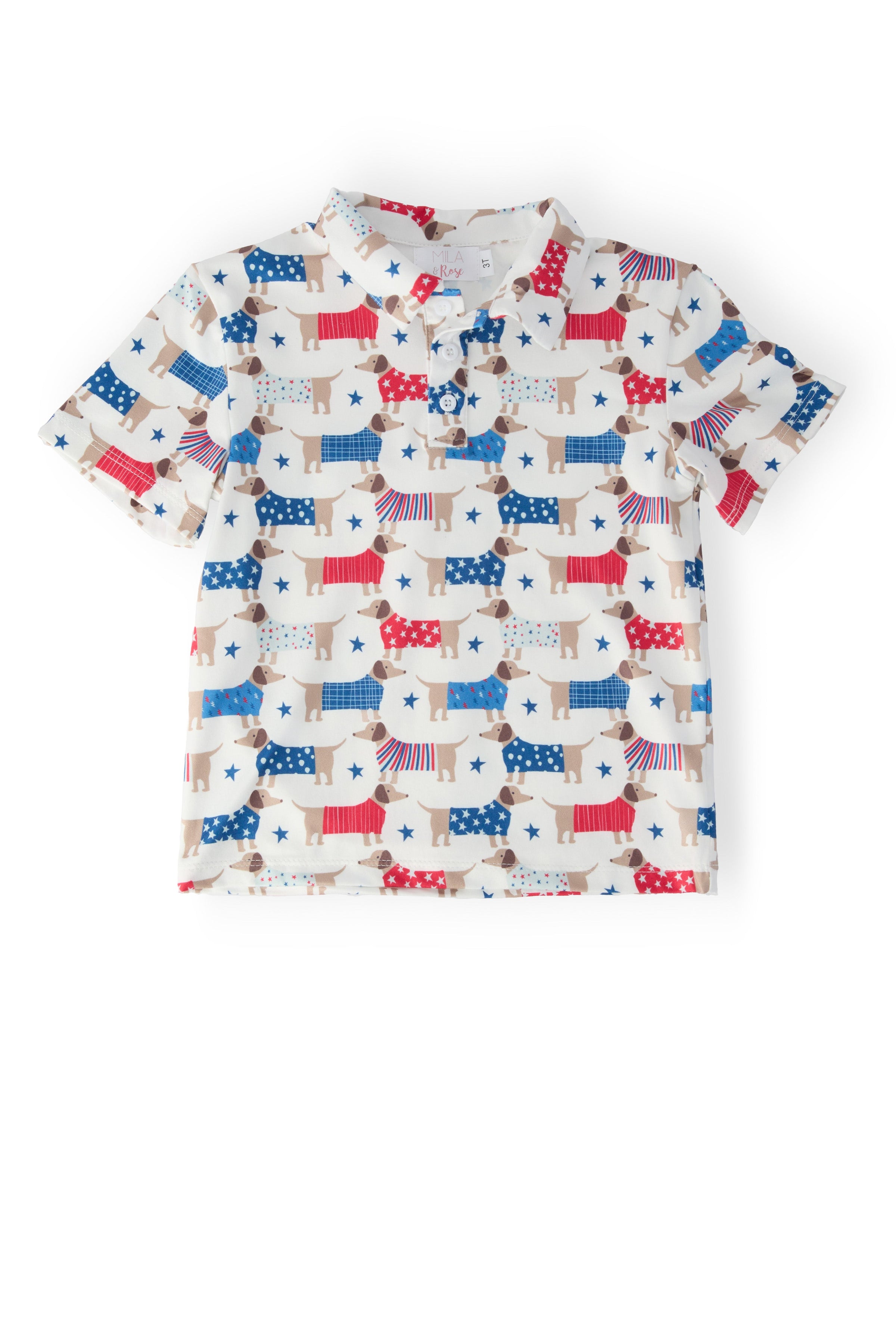 Choose the Mila & Rose Boys Patriotic Pups Short Sleeve Polo when you want a dependable, comfortable polo that elevates everyday wear with a touch of playful style. Wear–Play–Repeat.