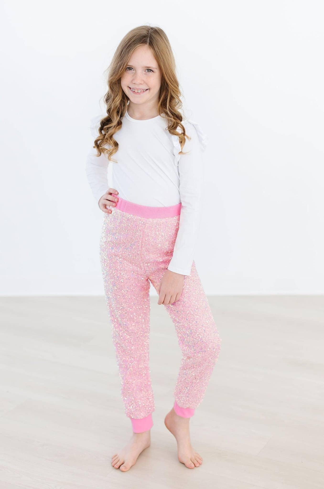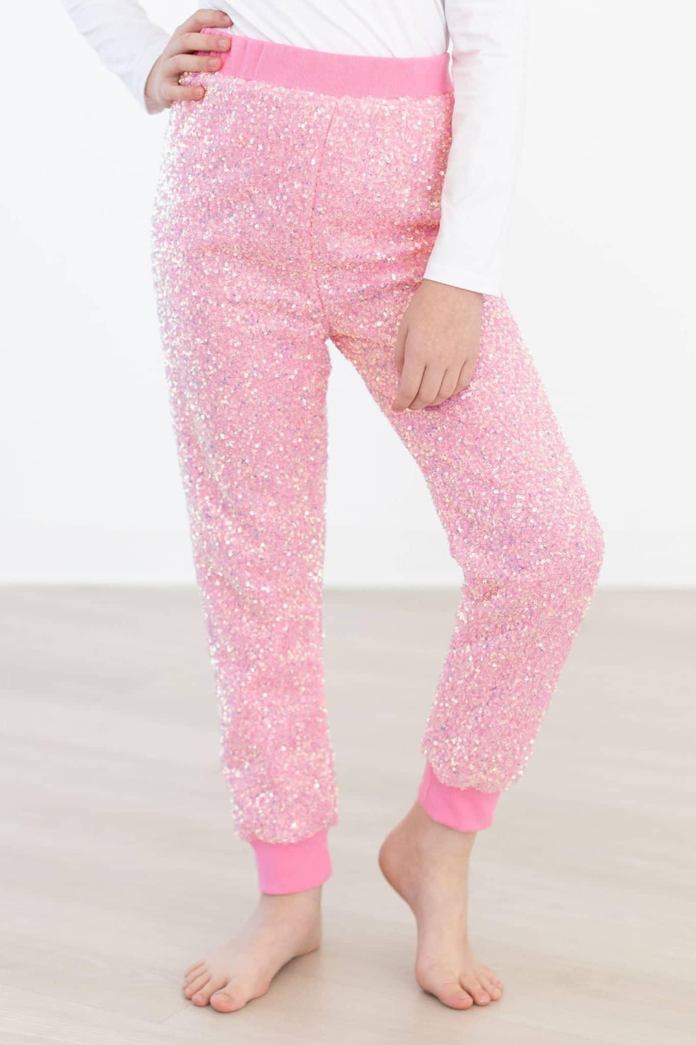 Vibrant Bubblegum Pink Sequin Joggers For Girls
