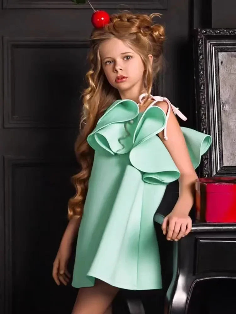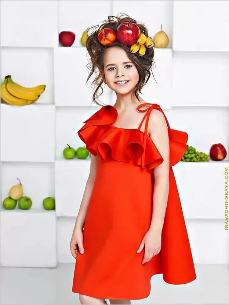 Cara-Mia Ruffled Girls Party Dress - Stylish Off-Shoulder Design