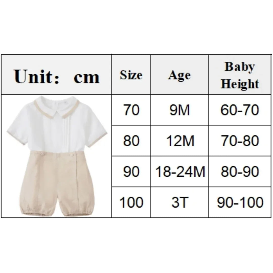 The "Carlton" Classic Boys Shorts Set is a timeless choice for your little one's wardrobe. This classic boys shorts set features a Peter Pan collar and charming button details for a look that never goes out of style. Crafted from soft, breathable cotton, the set is gentle on sensitive skin and perfect for everyday wear or any special occasion.