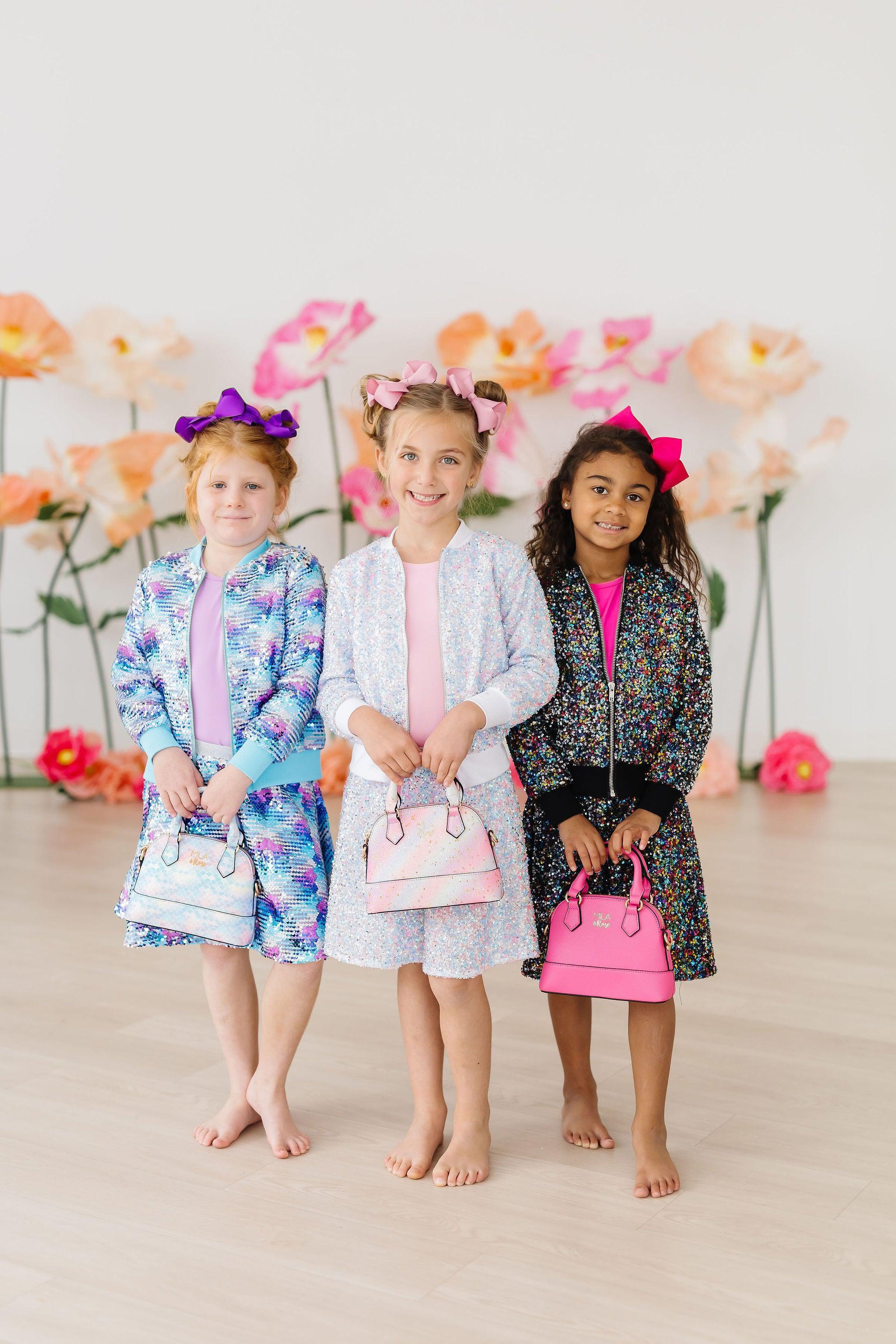 This twirl skort is designed for versatility. It pairs perfectly with a variety of tops and jackets from our collection. Mix and match to create a unique ensemble that matches her personality and style! Just imagine the enchantment as she twirls in this shiny skort, spreading smiles wherever she goes.