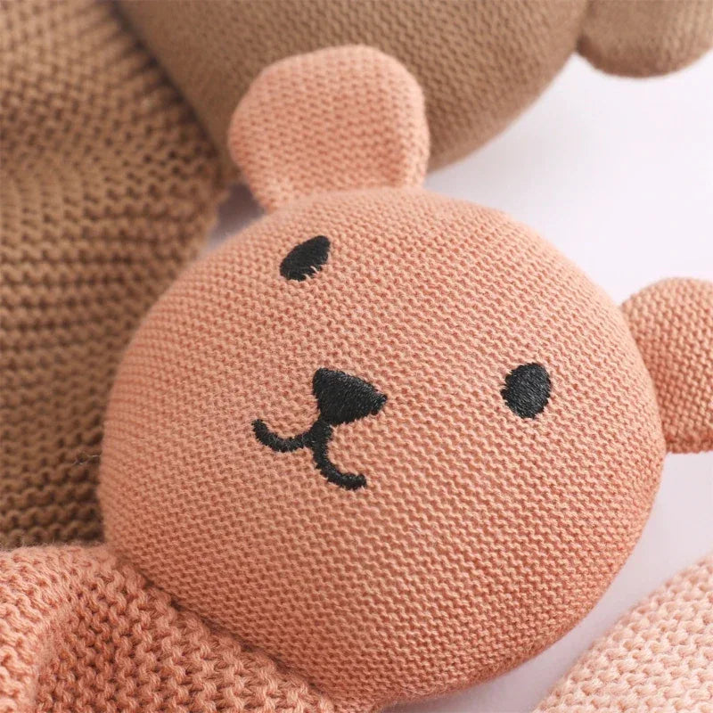 Crafted from high-quality cotton, these soothing cloth toys are gentle on your child’s skin. The unique knitted animal face adds an element of charm, providing both aesthetic appeal and a sense of security to your little one. Children adore cuddling up with their "Little Bear Babies," turning these toys into their go-to comforters.