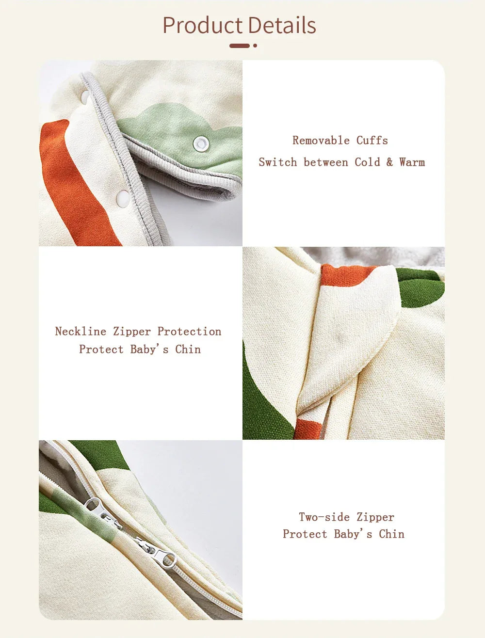 - Detachable Sleeves: Customize your baby's warmth with convenient detachable sleeves that make dressing easy.