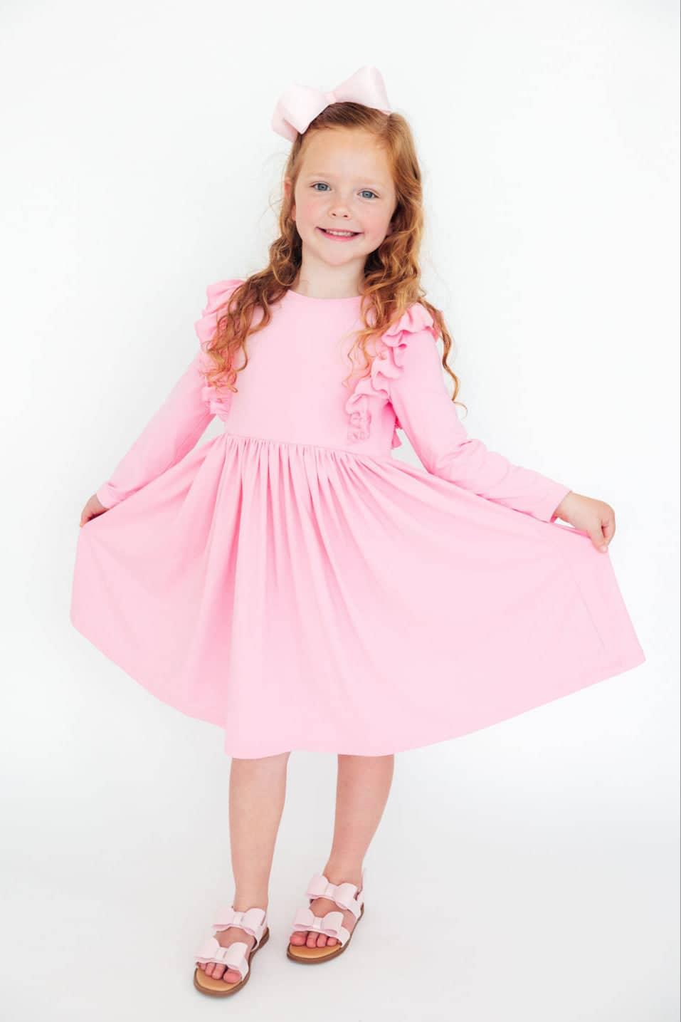 Bubblegum Pink Long Sleeve Ruffle Girls Twirl Dress