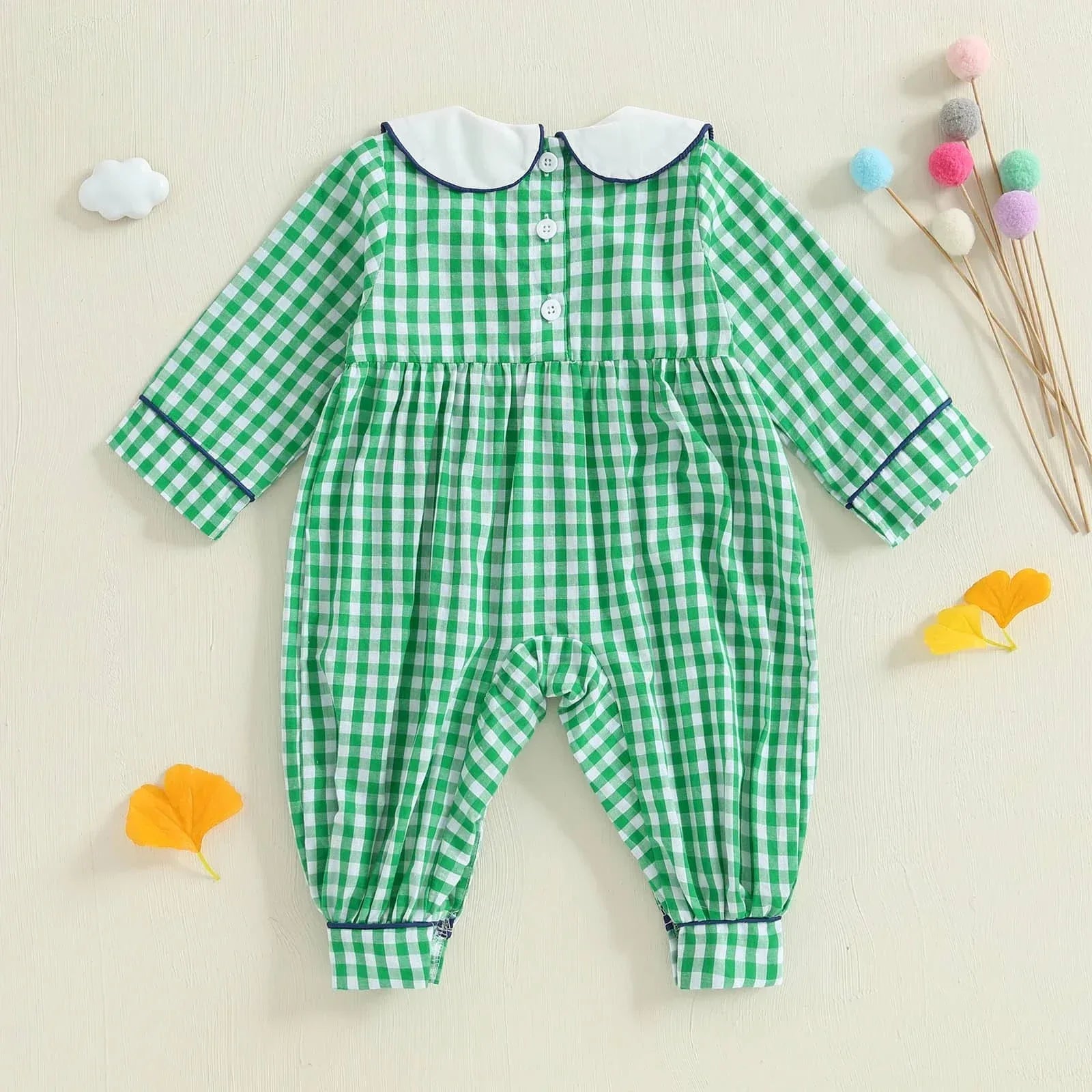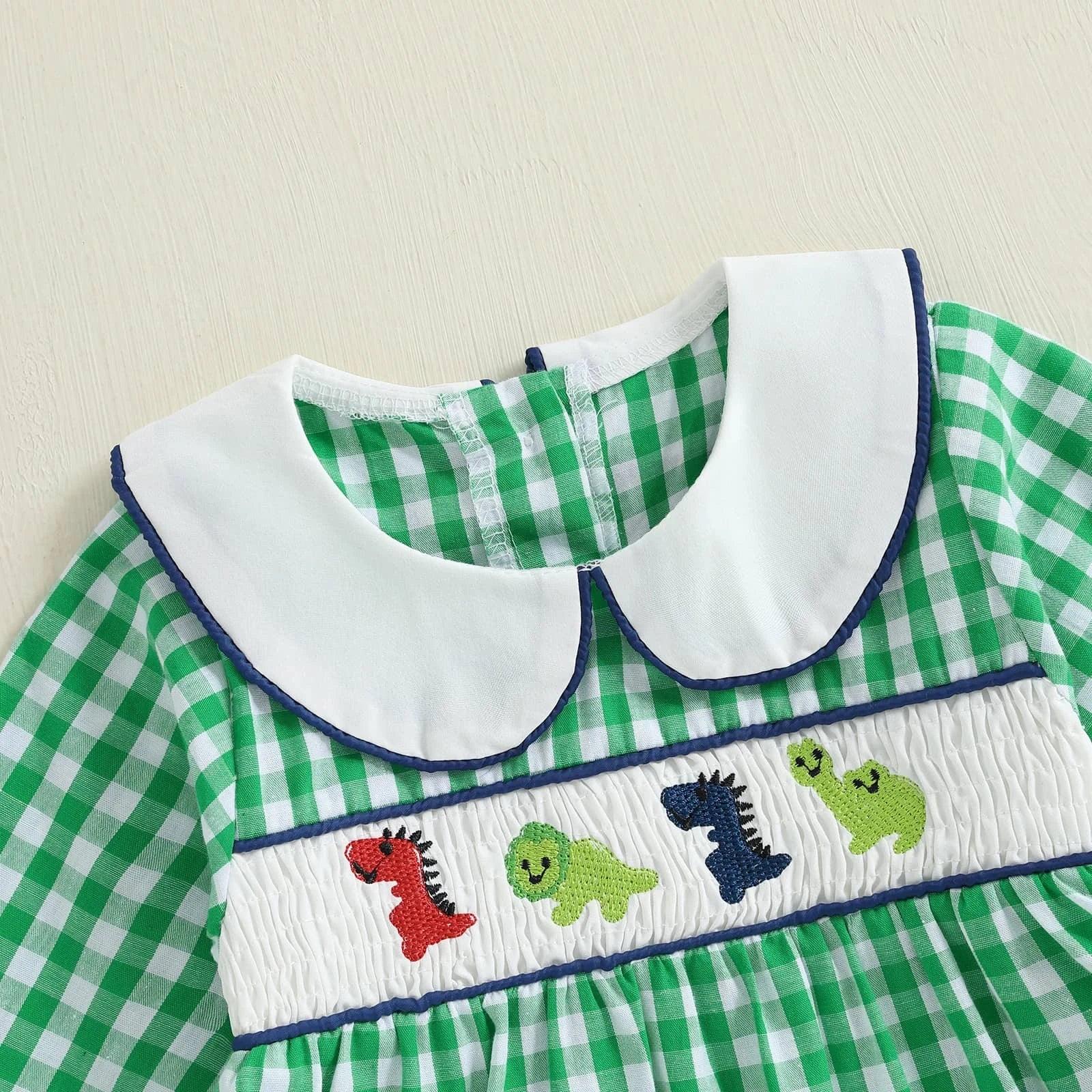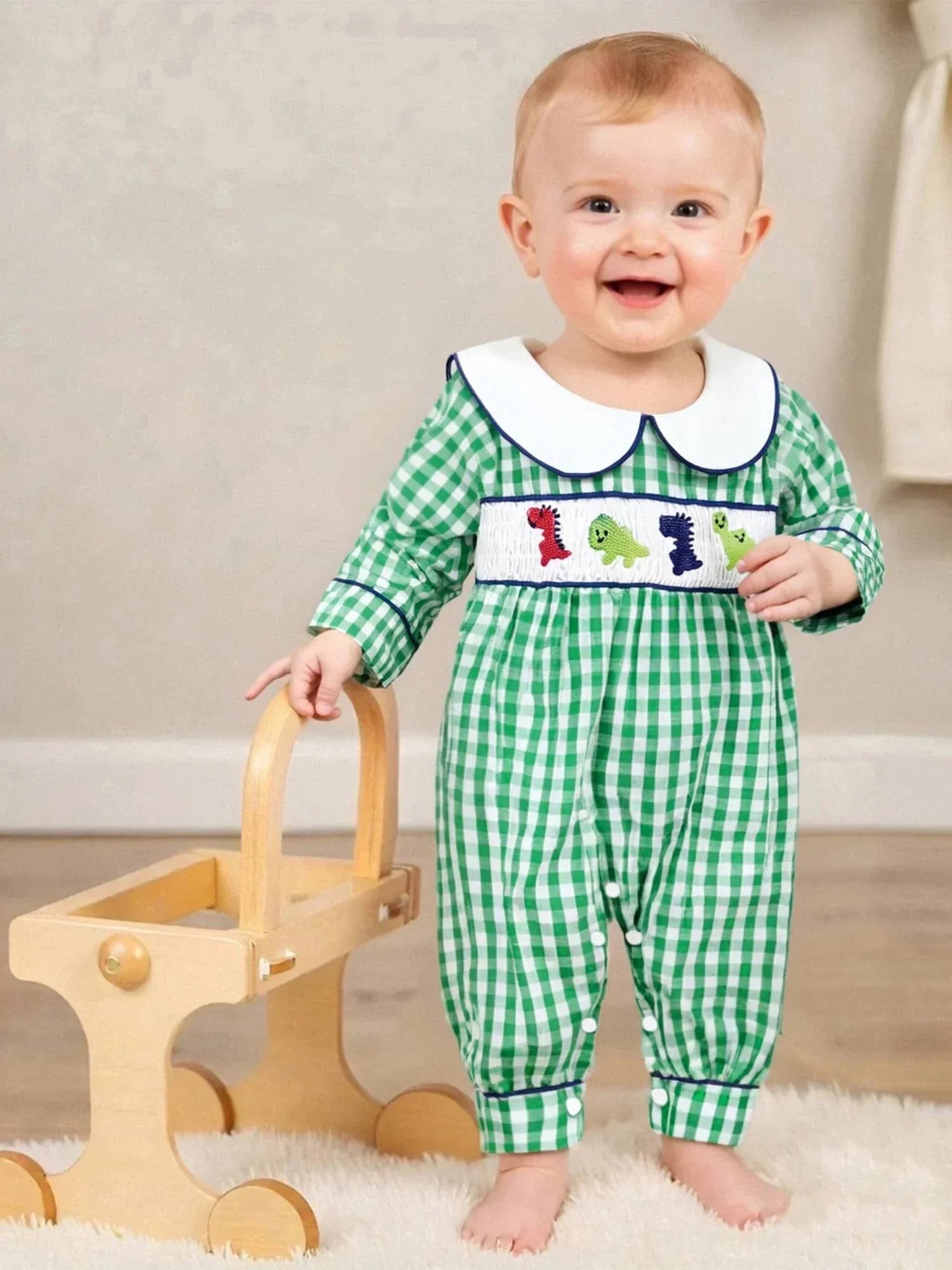 Dinosaur Baby Romper - Cute Green Checkered Jumpsuit
