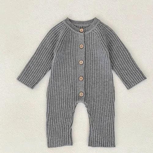 'Morgan' Ribbed Fall Knit Baby Romper - Buttoned