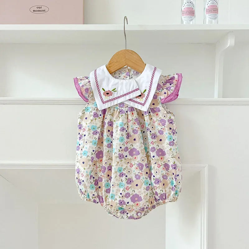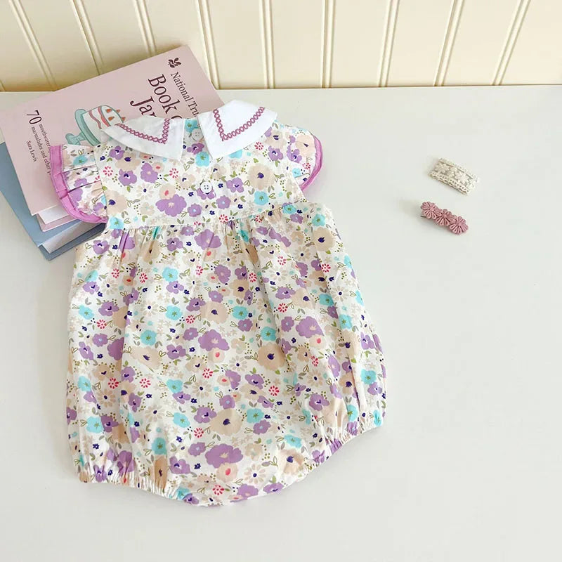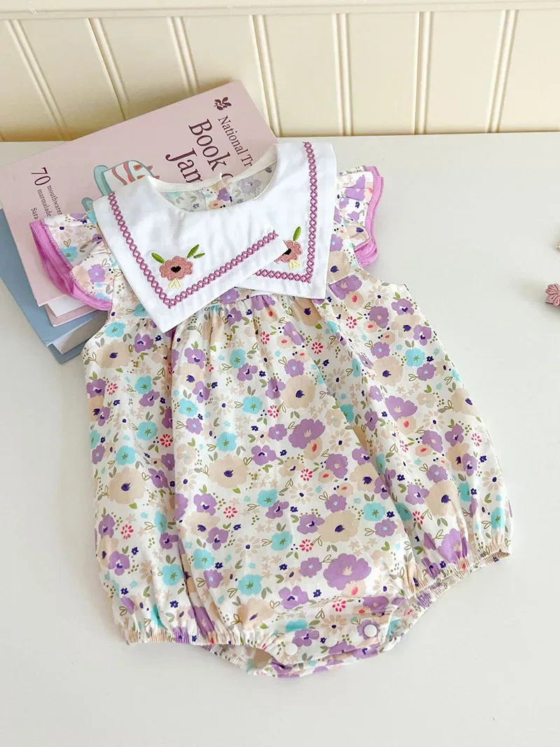 Precious Flowers Baby Bubble Romper with Embroidered Collar