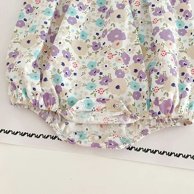 Don't miss out on this delightful piece. The "Fleurs" baby bubble romper is a must-have for every stylish baby's closet. Watch as your little one blooms in elegance while enjoying the freedom of movement this romper grants.
