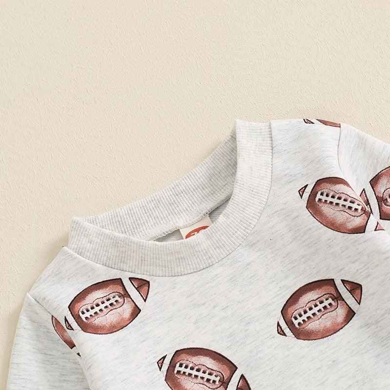 Looking for the cutest outfit for your little sports fan? The "Football Cutie" football baby romper is a total touchdown. This romper shows off a fun football print pattern that covers the whole outfit. It is perfect for game days, family photos, or just hanging out at home.