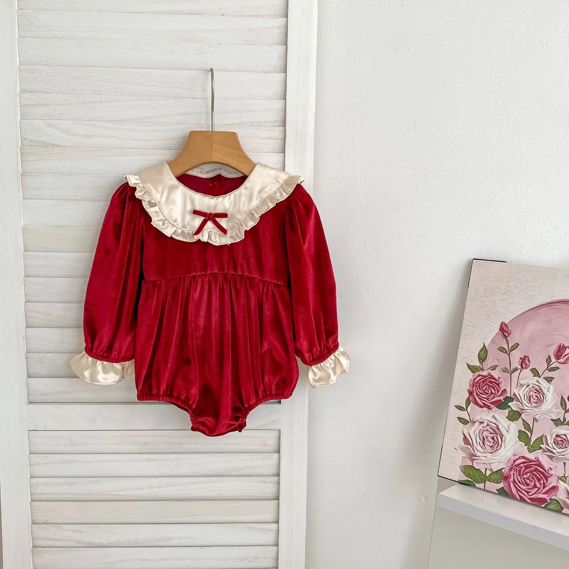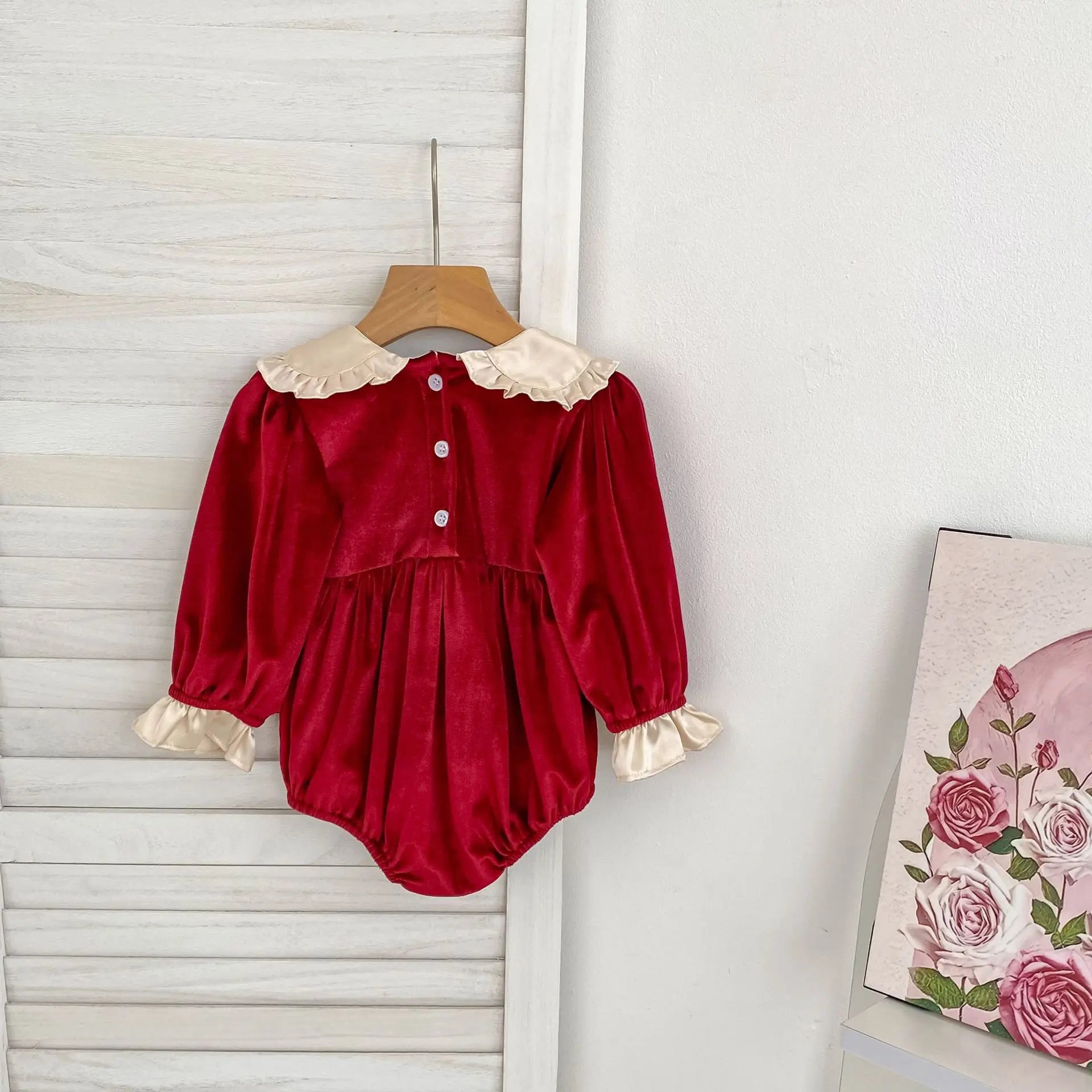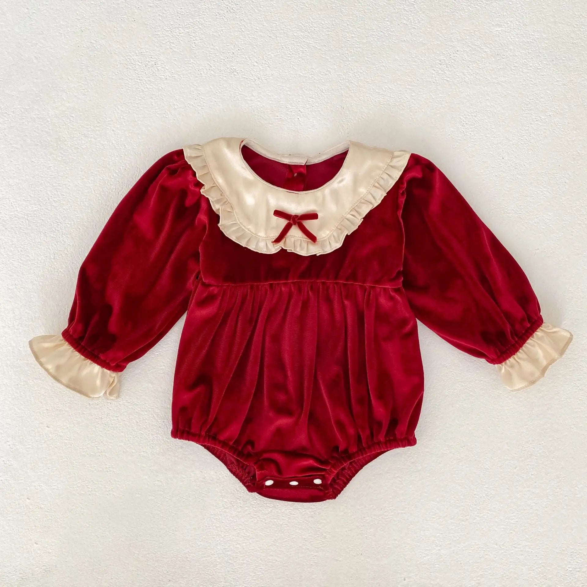 "Frilly Crissy" Winter Velvet Baby Bubble Romper