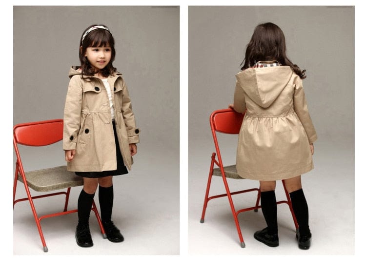'Sara-Ann' Stylish Classic Girls Hooded Trench Coat - 2 Colors