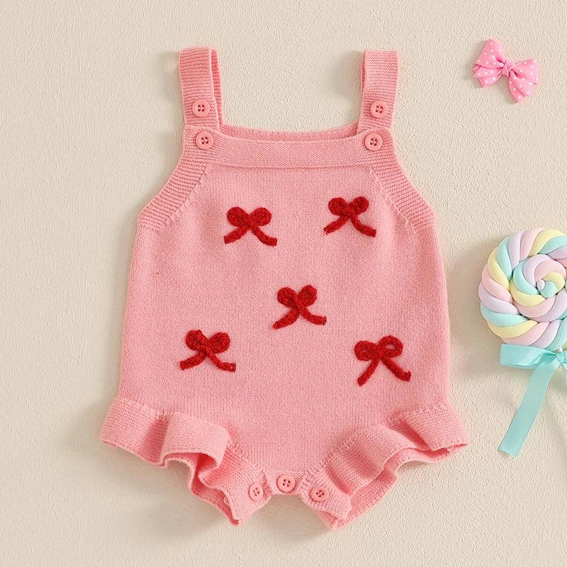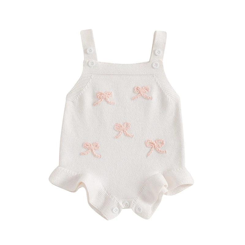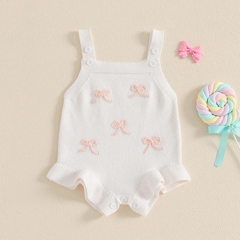 Embrace style and comfort for your baby girl with the "Little Bows" Girls Knitted Romper Overalls—she’ll look adorable and feel great!