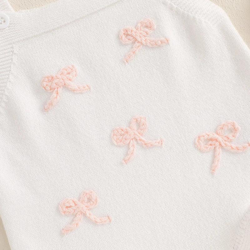 "Little Bows" Girls Knitted Romper Overalls - 2 Colors