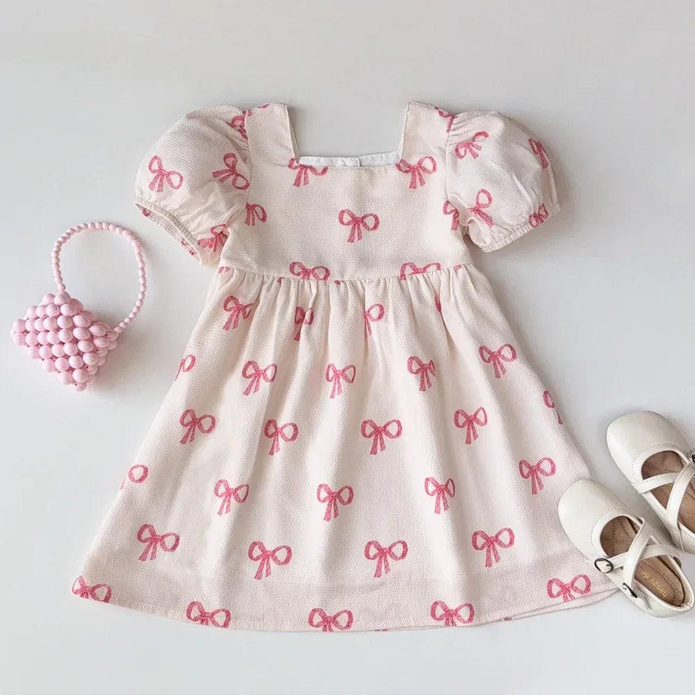 'Sweet Little Bows' Girls Pink Party Dress with Cute Bow Pattern