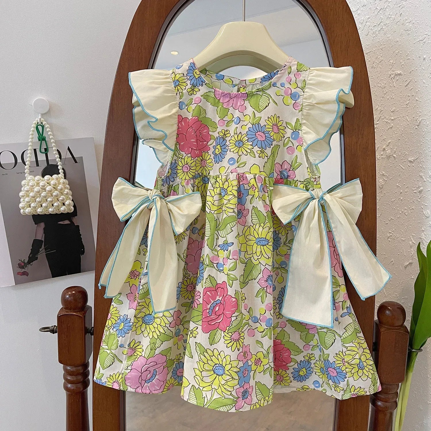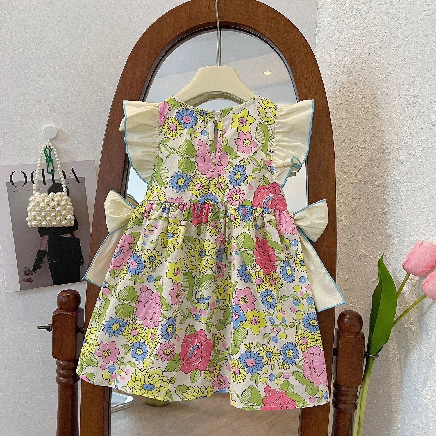 'Sonja' Girls Ruffled Party Dress Floral Print & Bow Ties