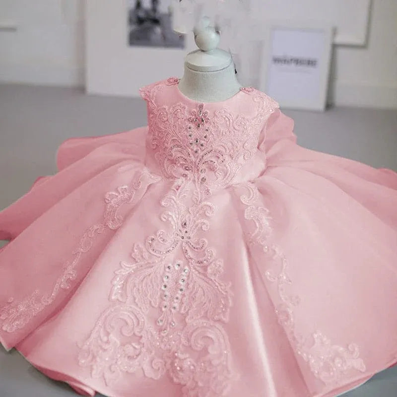 The dress has delicate crystal accents. The embroidery gives a touch of luxury. Soft organza layers create gentle volume. The bodice features a soft inner lining for easy comfort. Kids can move with ease. The girls special occasion dress with crystal accents is crafted for memorable days.