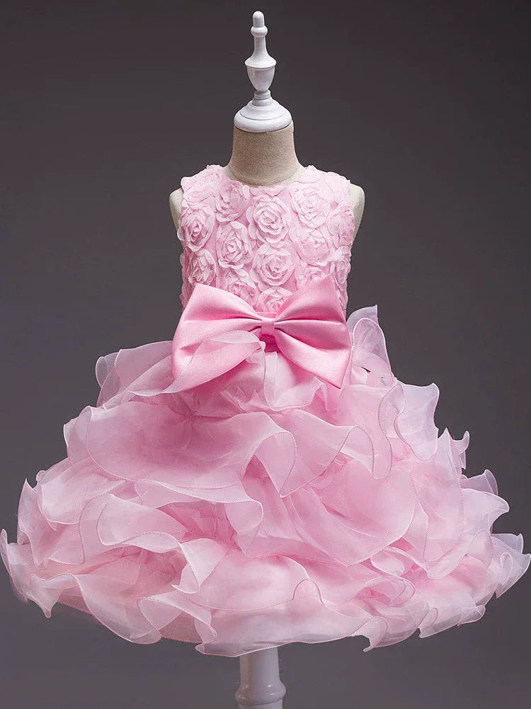 This beautiful sleeveless dress boasts a round neckline and a tiered skirt, providing a flattering fit that accentuates her figure. Whether it’s for special events, birthday parties, or her role as a flower girl, this dress will ensure she turns heads and feels confident. The convenient zippered back not only makes dressing up quick and easy but also adds a practical element to an irresistibly chic design.