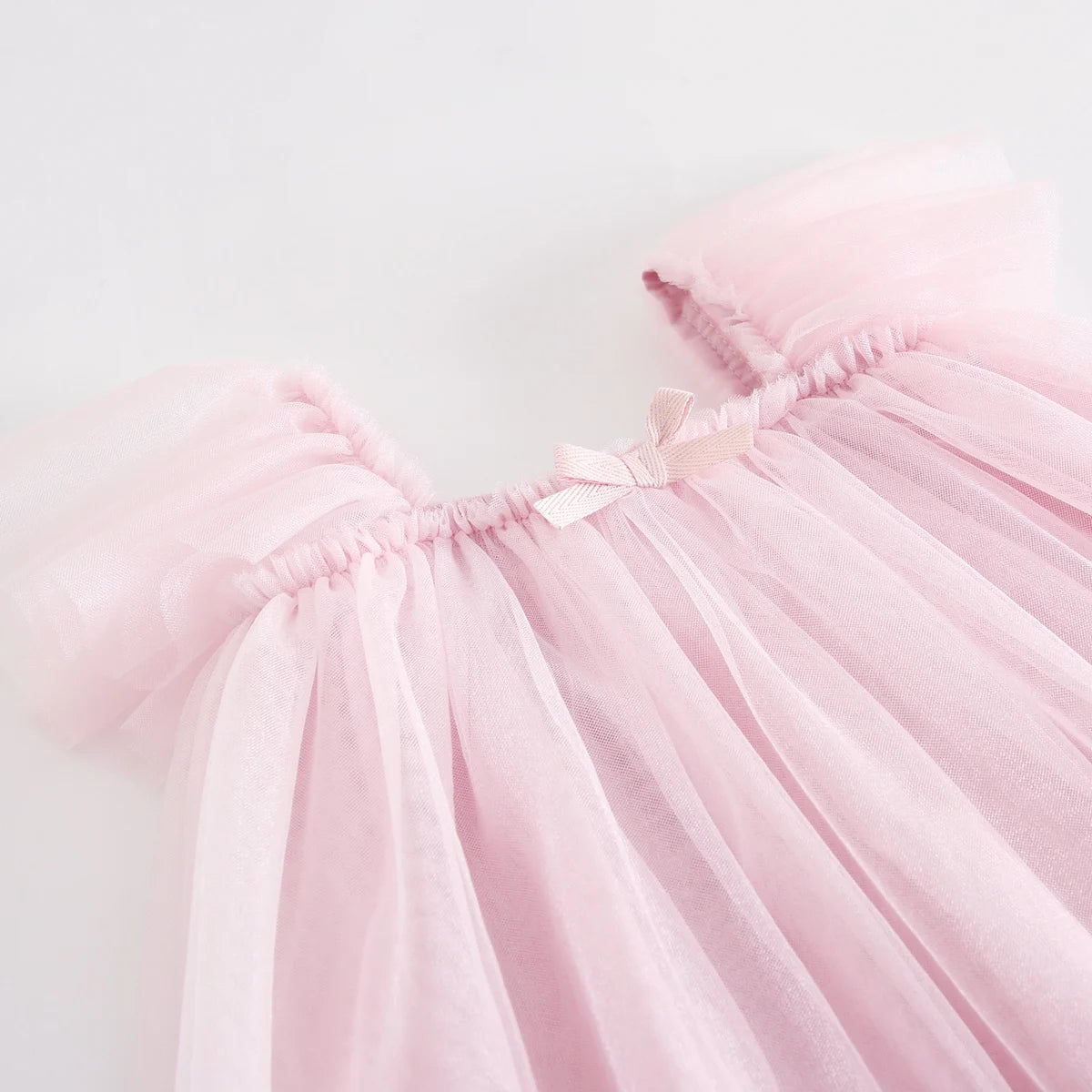 Tulle Sweetie Girls Tulle Party Dress - Pink Puff Sleeve Dress