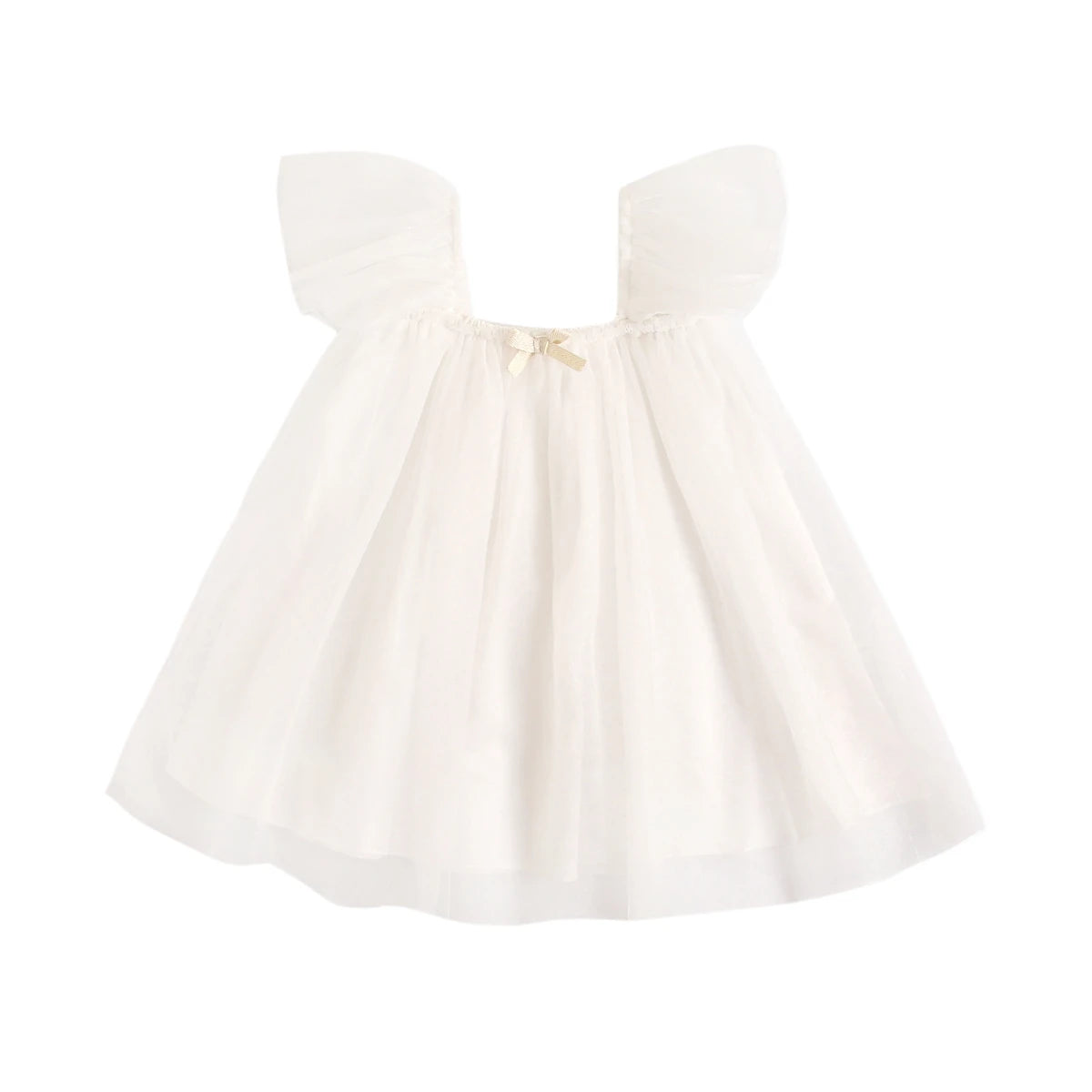 Step into a world of whimsy with the "Tulle Sweetie" girls tulle party dress from The Palm Beach Baby. This delightful dress features delicate flutter sleeves and layers of fine tulle. Each girls tulle party dress is designed for comfort and movement, so your child can play and twirl with ease at every celebration.