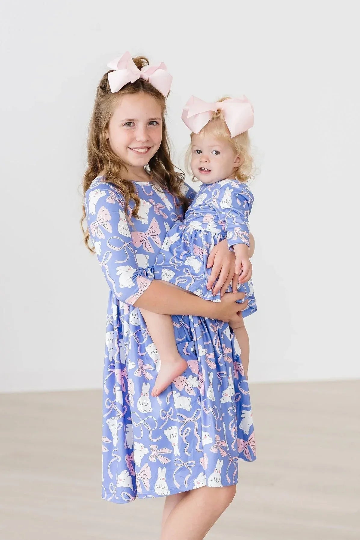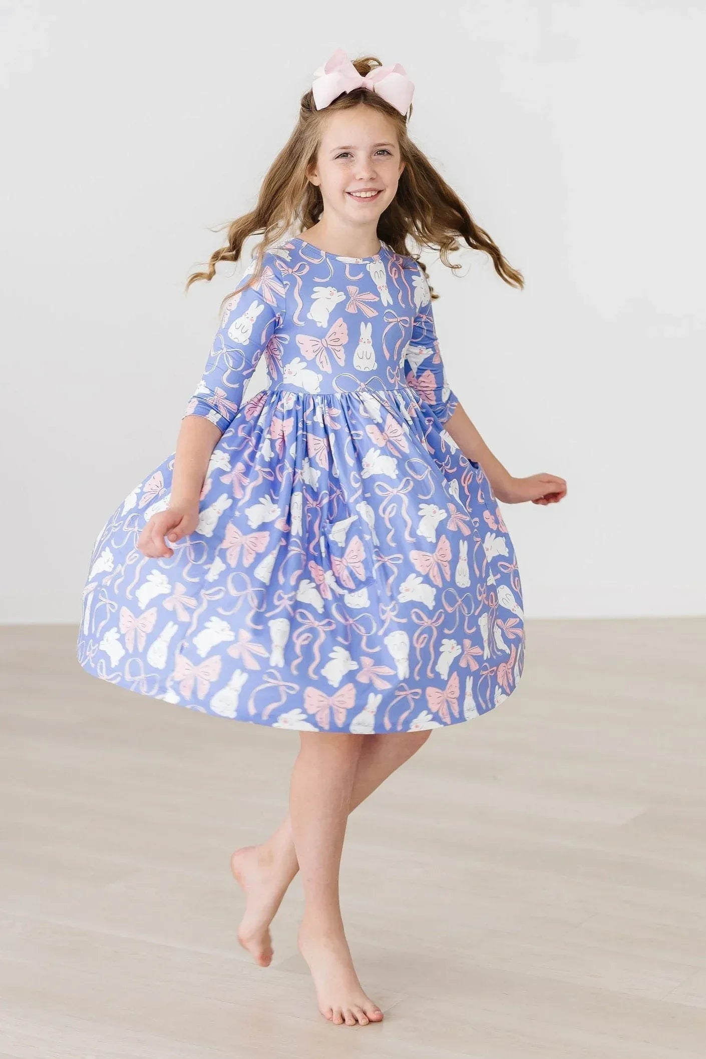 Introducing the splendid Hop, Skip & Twirl Three Quarter Sleeve Pocket Twirl Dress with Pockets by Mila & Rose! Perfect for your little one's adventures from school to the playground, this charming dress radiates both fun and functionality.