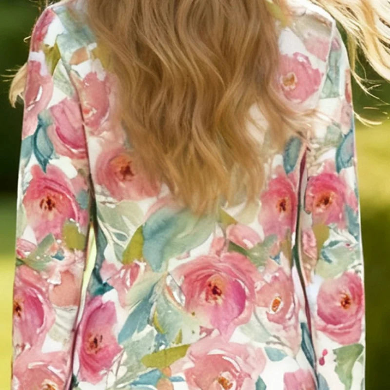 "Hannah" Watercolor Rose Long-Sleeve A-Line Dress