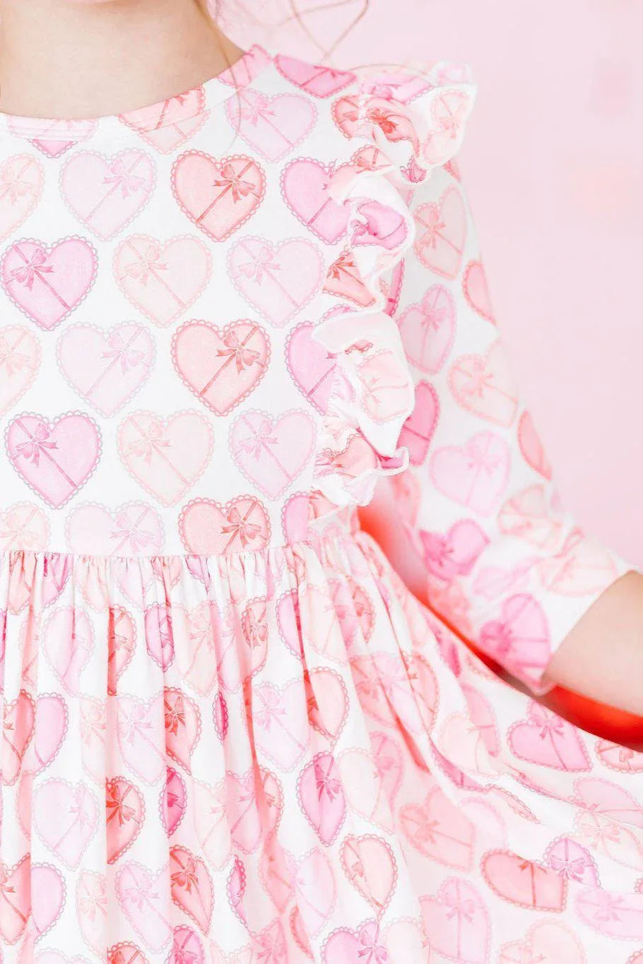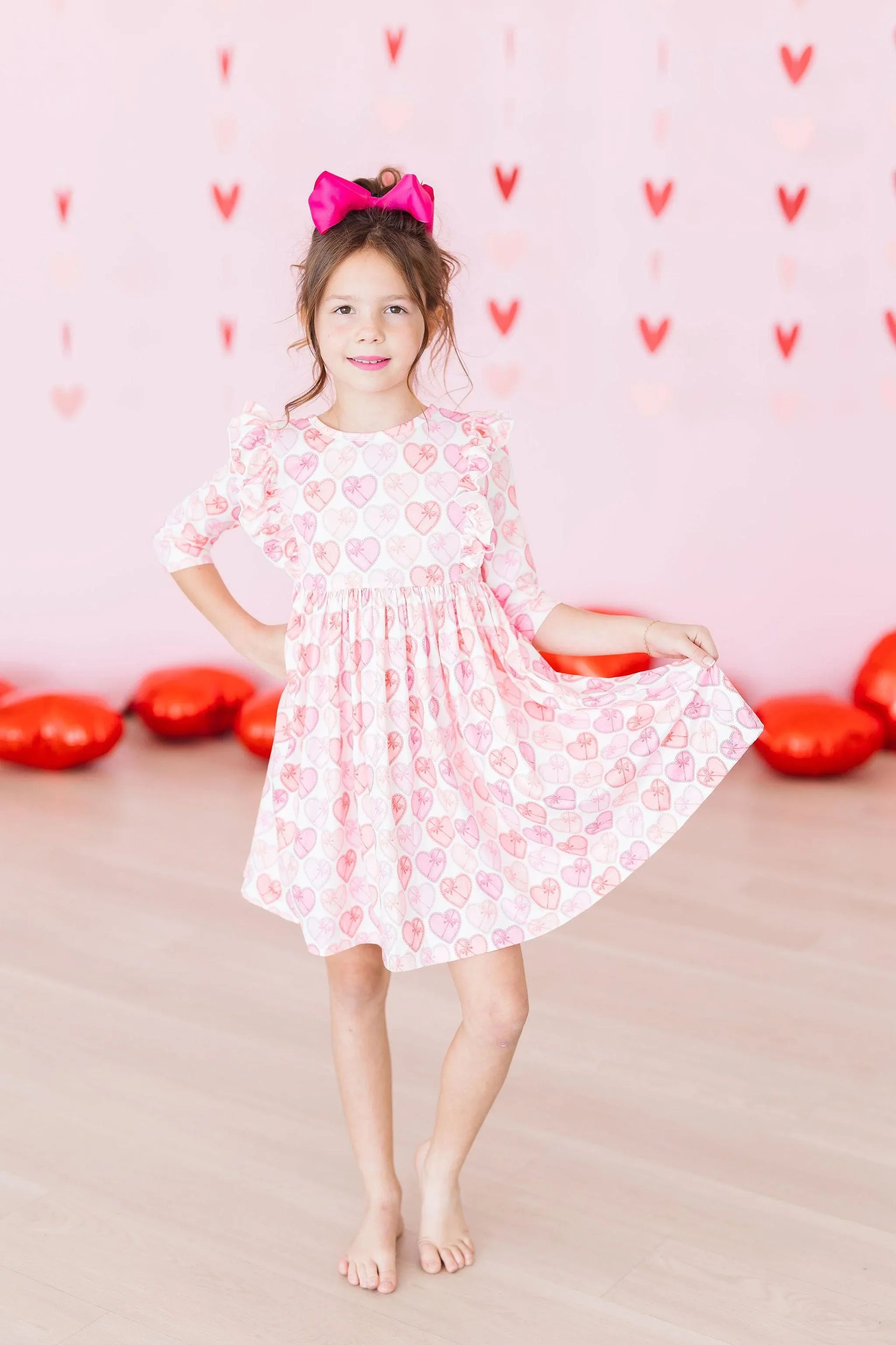 Adorable Heart Print Ruffle Twirl Dress for Girls
